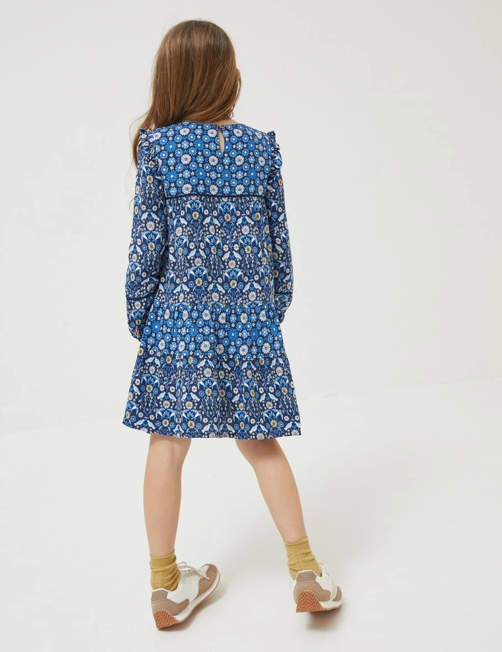 With its flowing tiered shape and mix of bird and floral prints, this FatFace dress is just right for parties. It’s cut in a comfy regular fit with an easy round neckline and elasticated cuffs that give fullness to the long sleeves. Frills at the shoulders create fluttery movement.