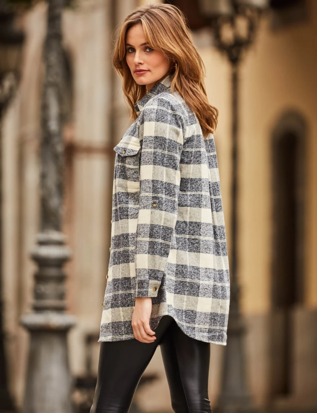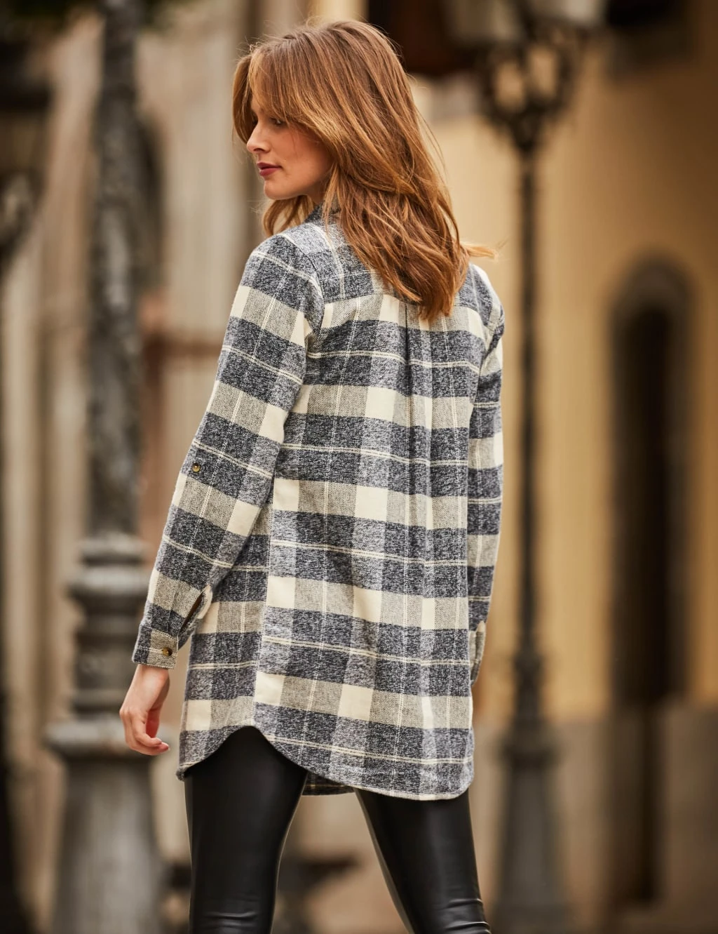 A true wardrobe hero, Sosandar’s cotton checked shirt works just as well as a top layer as it does on its own. It comes in a slouchy regular fit, with a flattering longline hem. The collared neckline, sleeve cuffs and chest pockets create a smart-casual look. Plus, the fabric is brushed for extra softness and warmth.