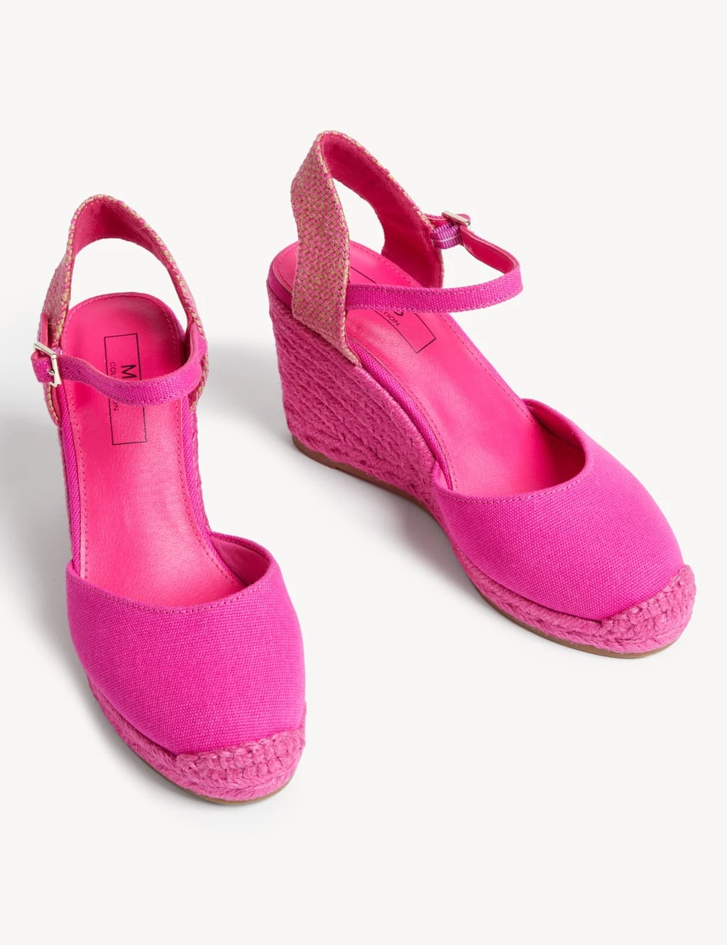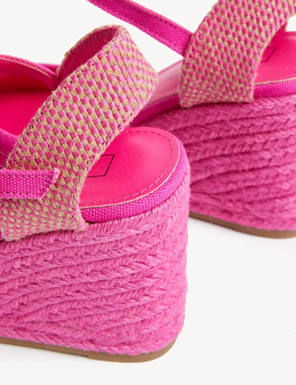 With their bright colour and raffia trims, these espadrille sandals are a playful choice for warmer weather. They’re made with a high-wedged heel and a closed toe design. Buckle-strap fastenings around the ankles add an elegant finishing touch.