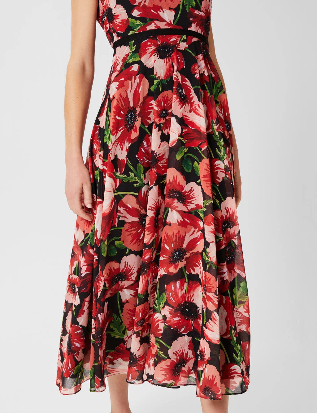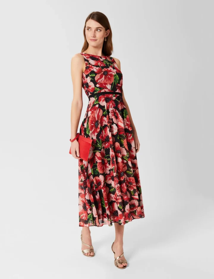 Let this pretty Hobbs dress take you through all your special summer occasions. It’s cut to a flattering regular fit, with a rounded neck, defined waist and swishy maxi-length skirt. A blooming poppy print decorates the delicate georgette fabric. Made with recycled polyester.