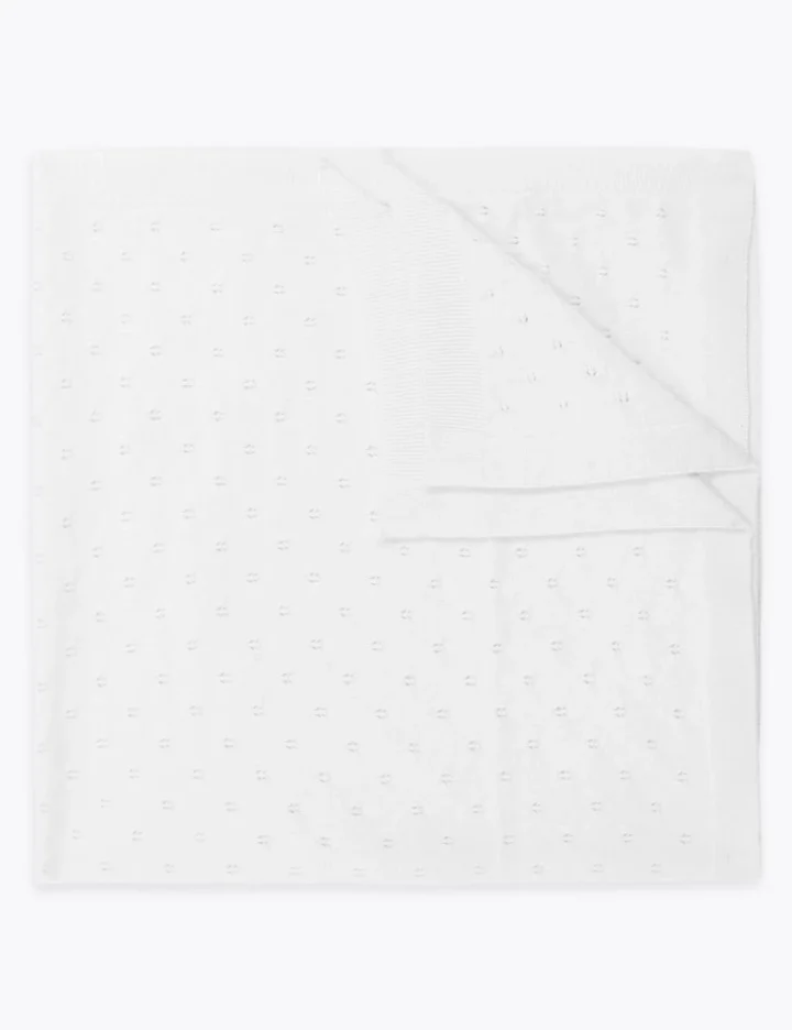 Knitted with a touch of cashmere, this cotton-rich shawl will feel extra soft next to baby’s skin. Pointelle design, with ribbed edges. Perfect for special occasions.We only ever use responsibly sourced cotton for our clothes.