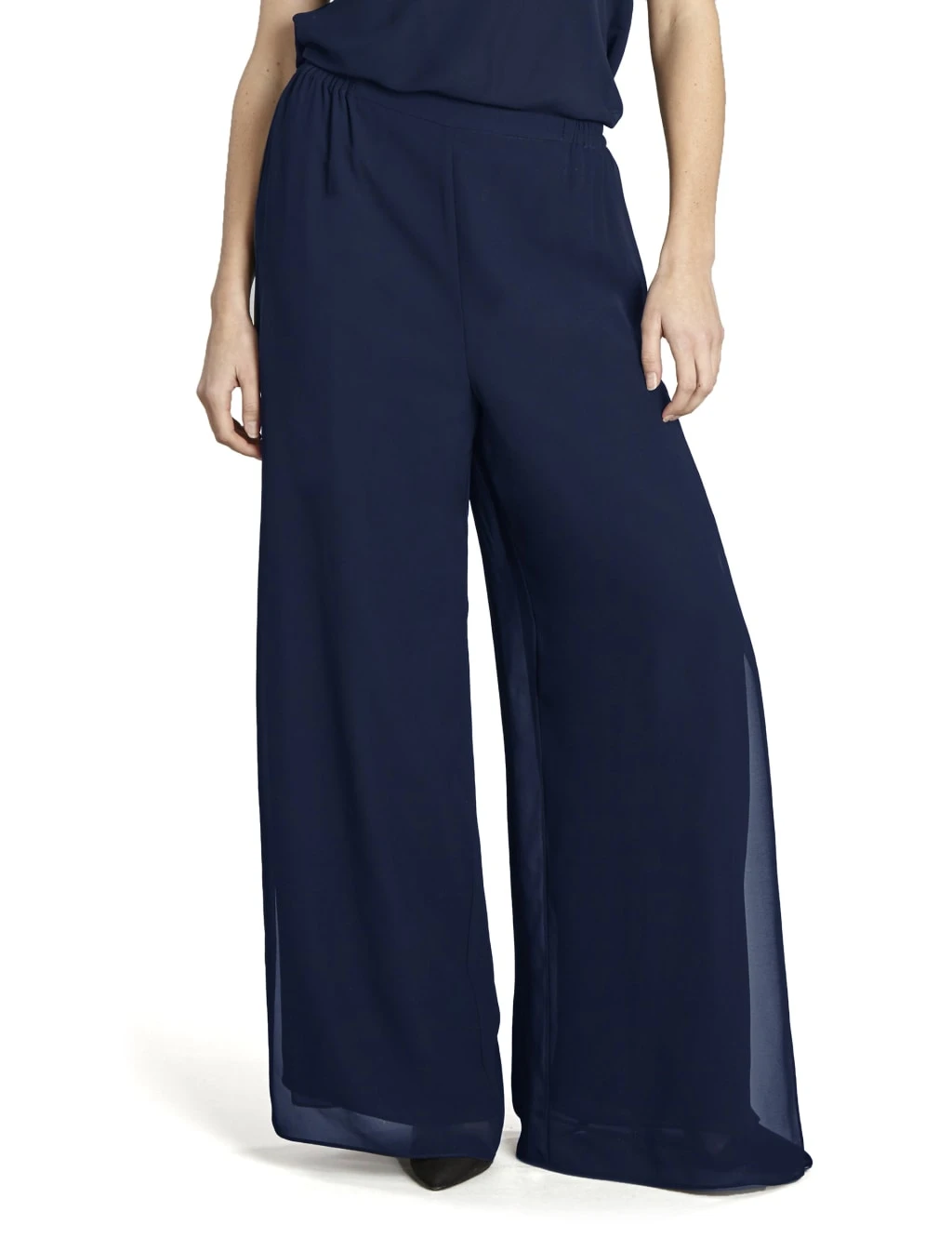 Slip into these elegant chiffon trousers by Gina Bacconi for a floaty feel on formal occasions. They’re designed with full-length wide legs that feature splits up the sides to create dramatic movement in the fabric. An elasticated waistband offers a flexible fit for all-day comfort.