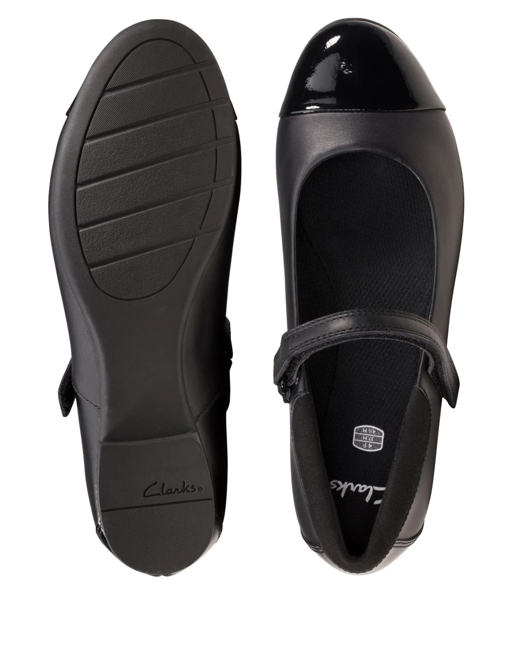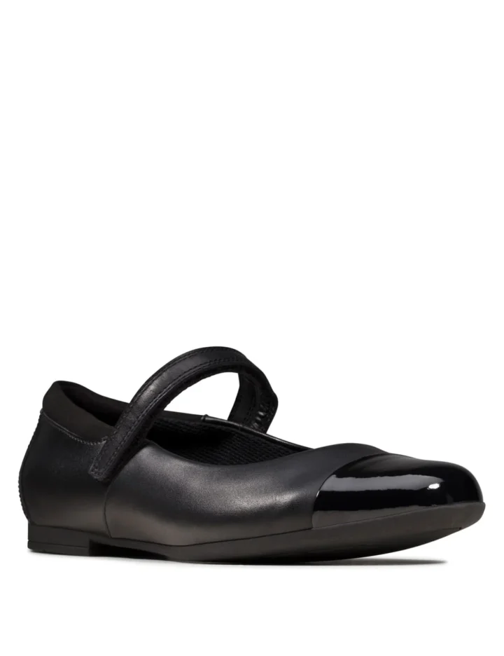 These leather Mary Jane shoes from Clarks offer the perfect mix of style and comfort. They’re made with flexible and durable rubber soles for practical everyday wear, while a riptape fastening provides easy on-and-off. The patent toe caps and subtle heels create a pretty finish.