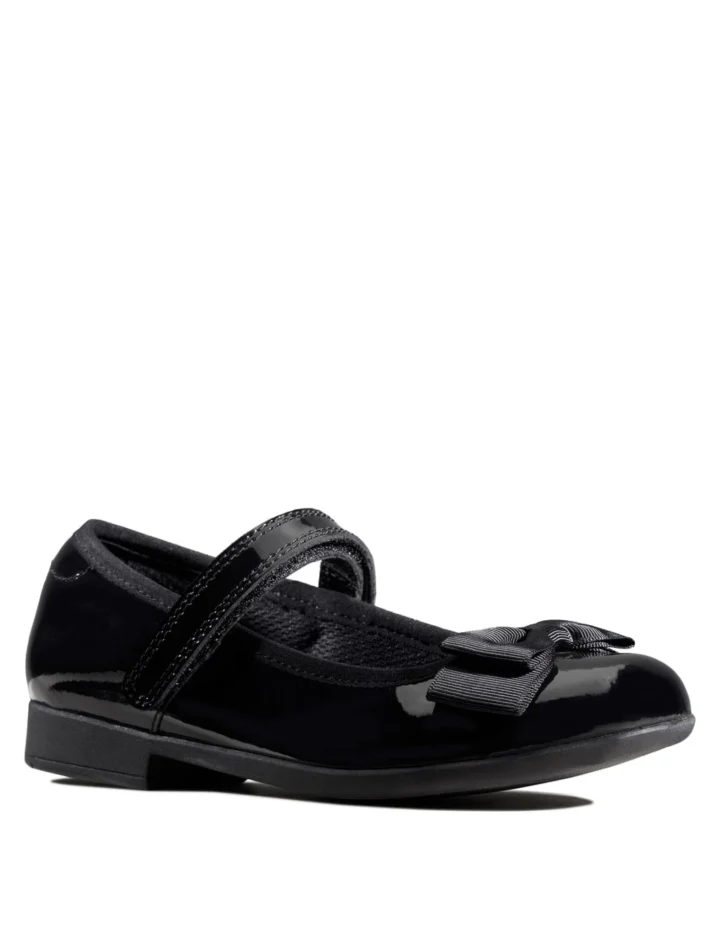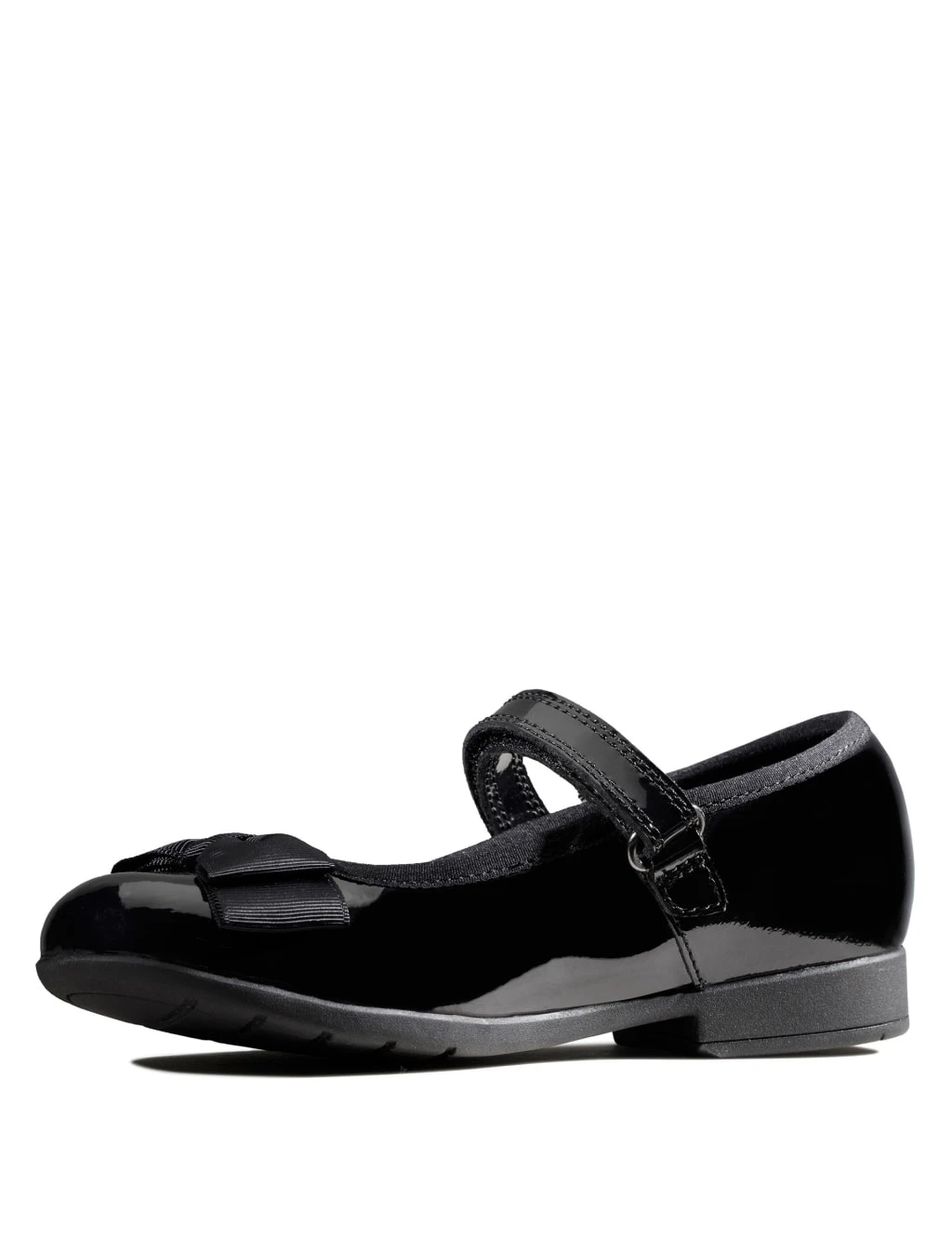 Kids will want to wear these pretty leather Mary Jane shoes from Clarks all week long. They feature comfy low heels, along with easy riptape fastenings and classic round toes. A padded collar keeps feet comfy, along with a lightweight, flexible sole. They have a patent leather finish for that shiny new shoes feeling.