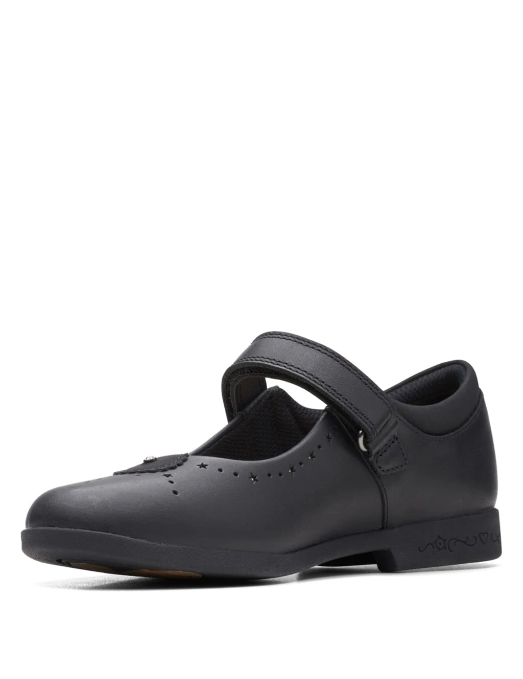 Bring extra fun to your youngster’s uniform with these leather school shoes from Clarks. They’re made with easy riptape fastenings. The uppers are decorated with cutout stars and gleaming crystals, while the inner sock uses a sparkly fabric for added bling. A glittery moulded key design in the sole ensures cool footprints on snowy or rainy days.