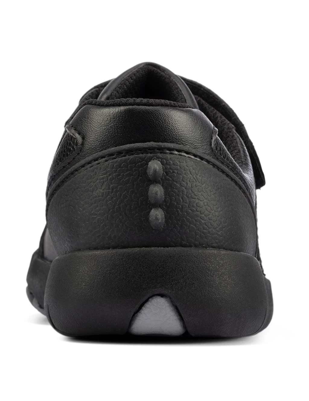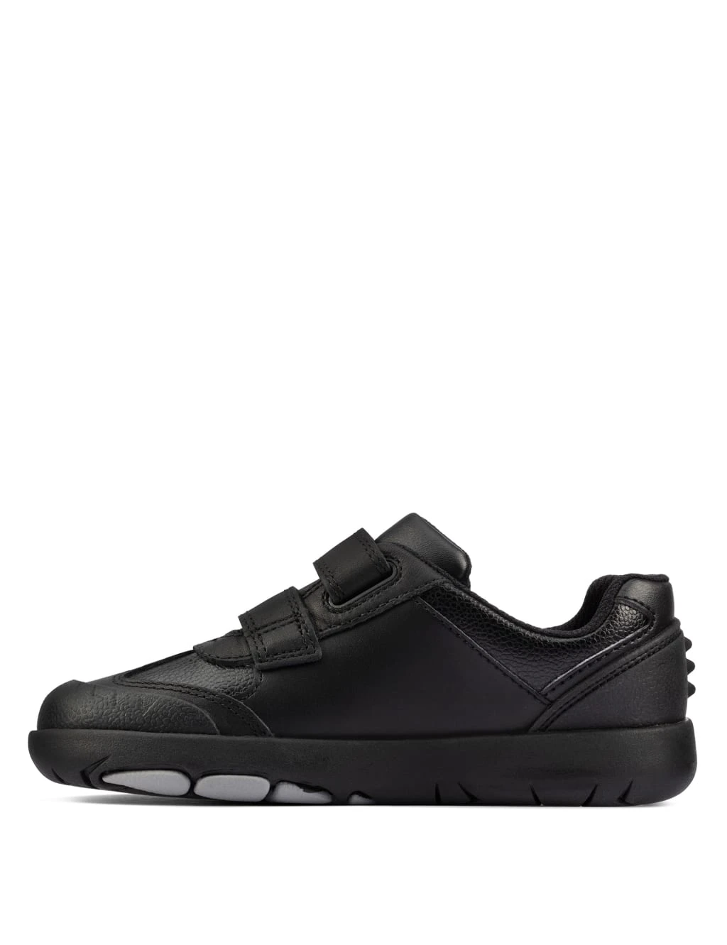 These sturdy leather school shoes from Clarks are designed to keep up with busy feet. They feature a secure double riptape fastening for easy on-off, plus flexible, grippy soles to encourage confident steps. Little feet are kept comfy thanks to a padded, recycled sketch mesh lining, while antibacterial Agion® technology keeps feet feeling fresh. Rubber heel spikes and a dinosaur footprint on the sole bring a playful finish to these smart shoes.