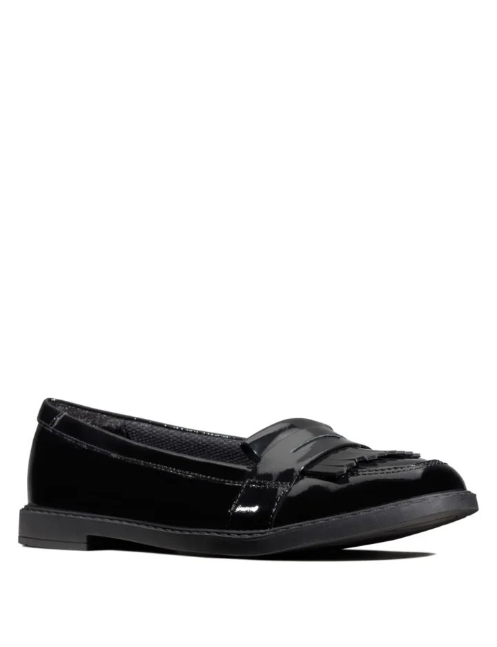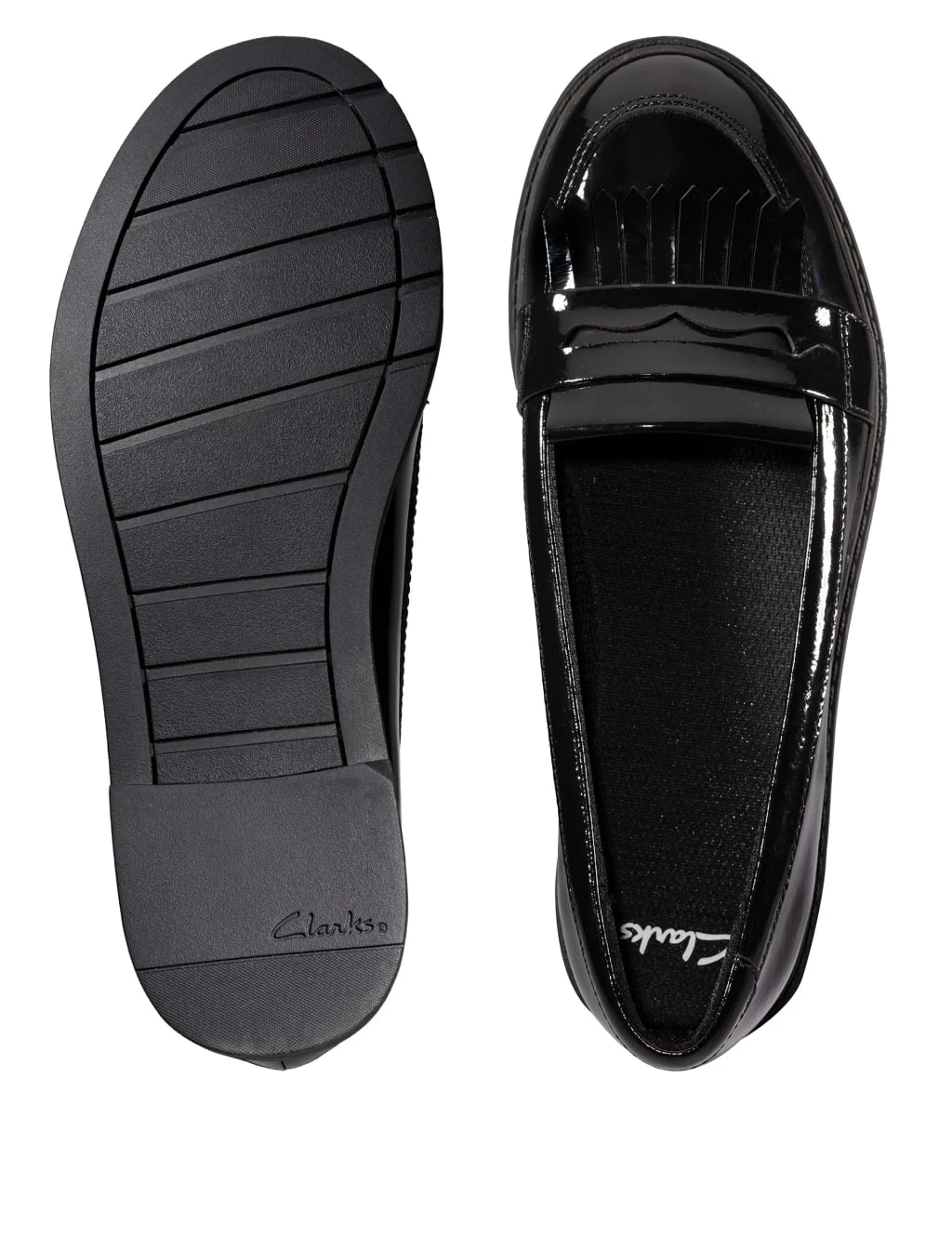 These loafers from Clarks will have kids looking smart for school. They’re crafted from premium patent leather with classic fringing. Padded collars and lightweight rubber soles look after growing feet. The slip-on style means you can get kids out the door quickly.