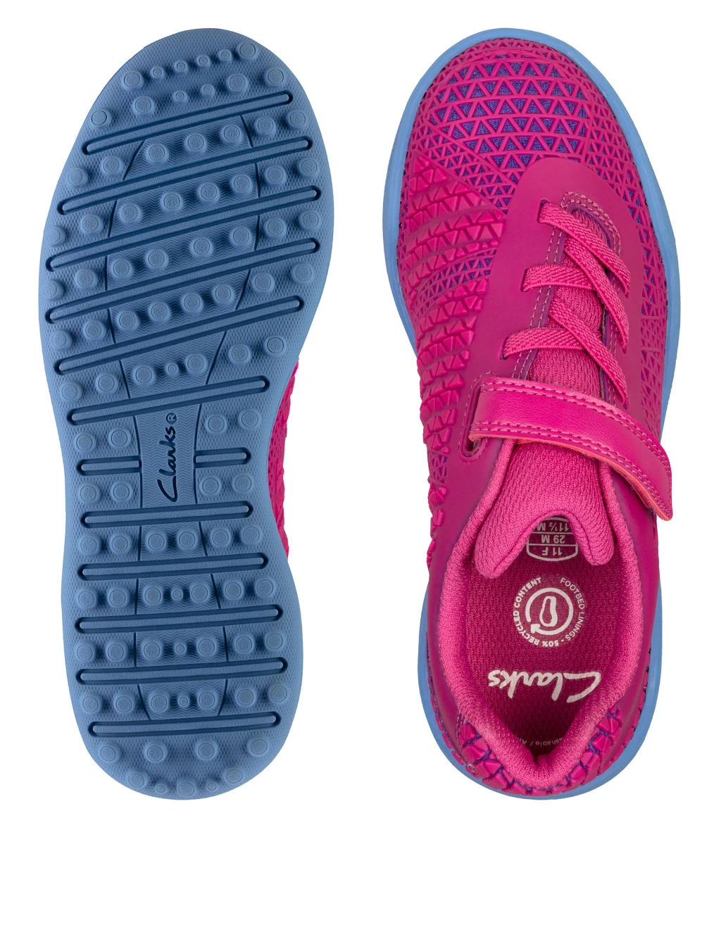 These astro trainers from Clarks are perfect for the pitch and the playground. This technical design has a low profile for easy movement and a riptape fastening for a secure feel. A statement fabric upper and contrast sole bring a cool finish to these comfy trainers.