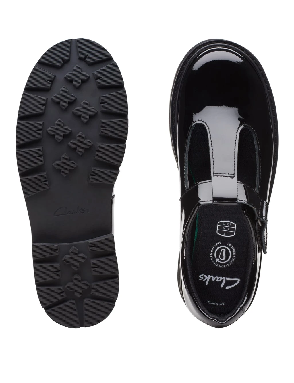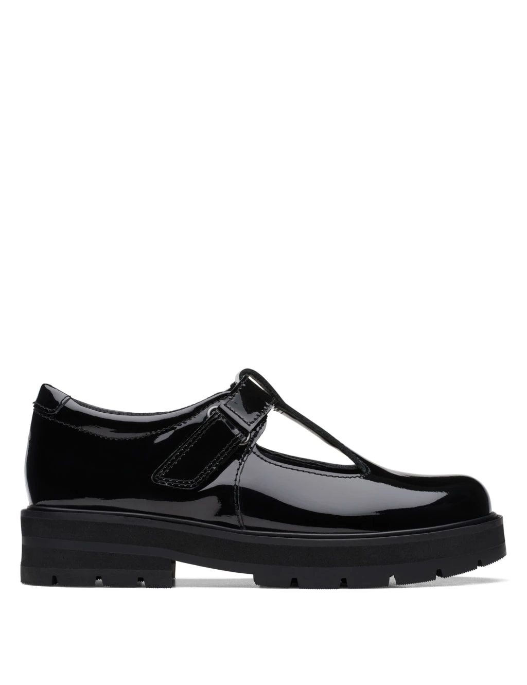 These shiny Mary Jane shoes from Clarks are a classic that they can wear again and again. Designed in a comfortable standard fit, they feature riptape fastenings for quick and easy dressing. The chunky low heel offers plenty of grip for action-packed days.