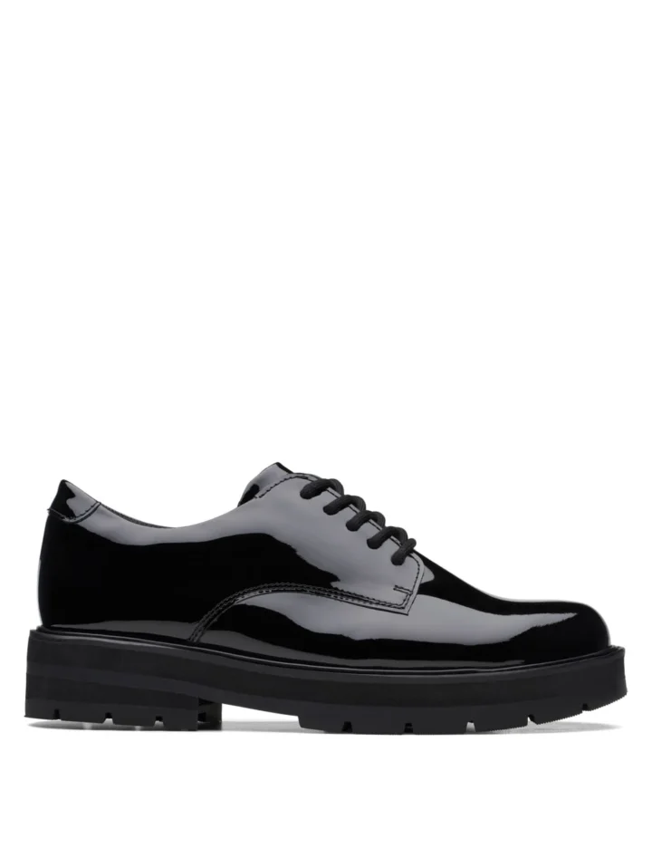 Clarks Patent Lace Up School Shoe