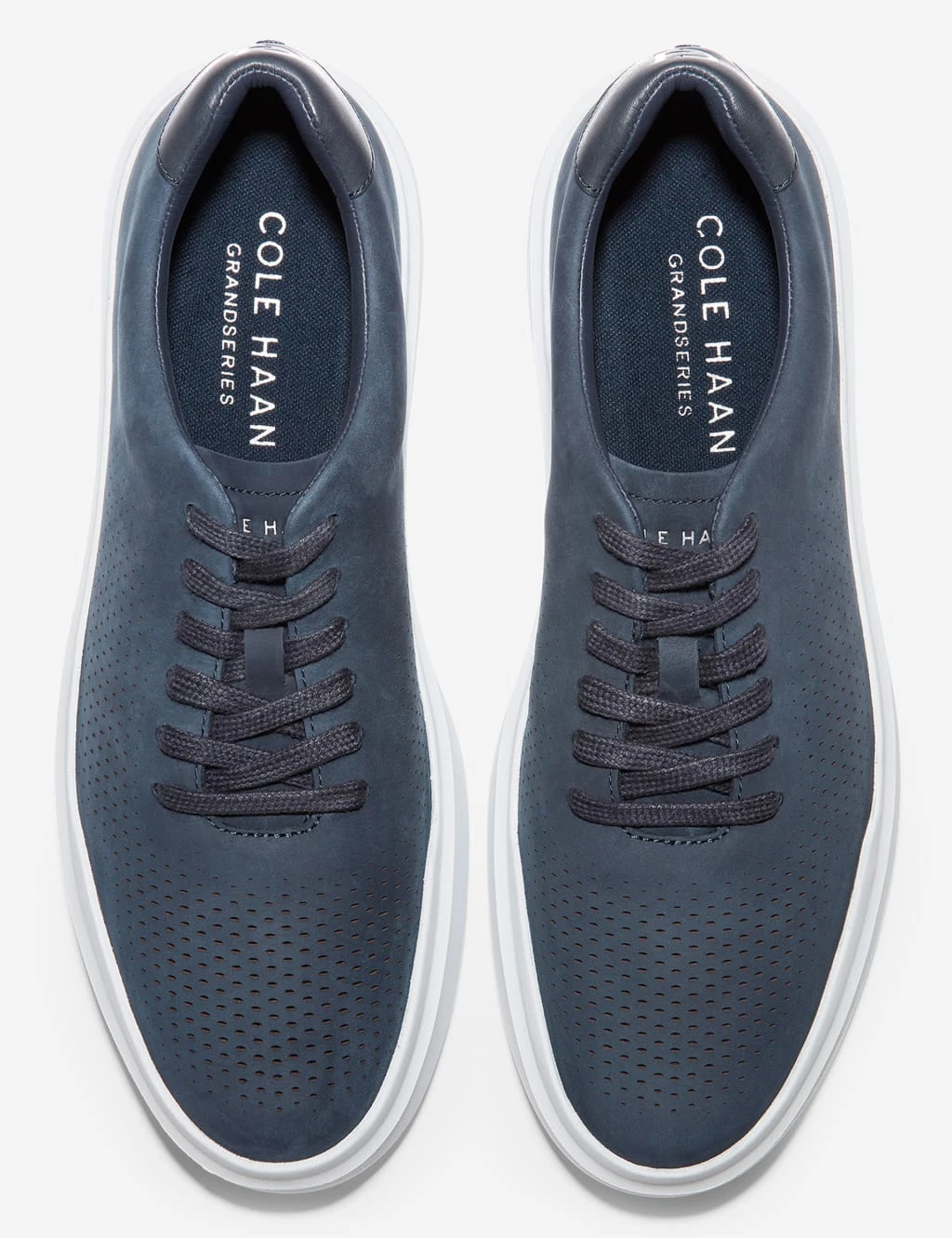 Refresh your off-duty footwear with these leather trainers from Cole Haan. Super lightweight and breathable, they have a cushioned memory foam footbed for all-day comfort. The smooth upper is finished with perforated detailing and matching lace fastenings for a sporty feel, while the contrast sole has plenty of grip for everyday wear.