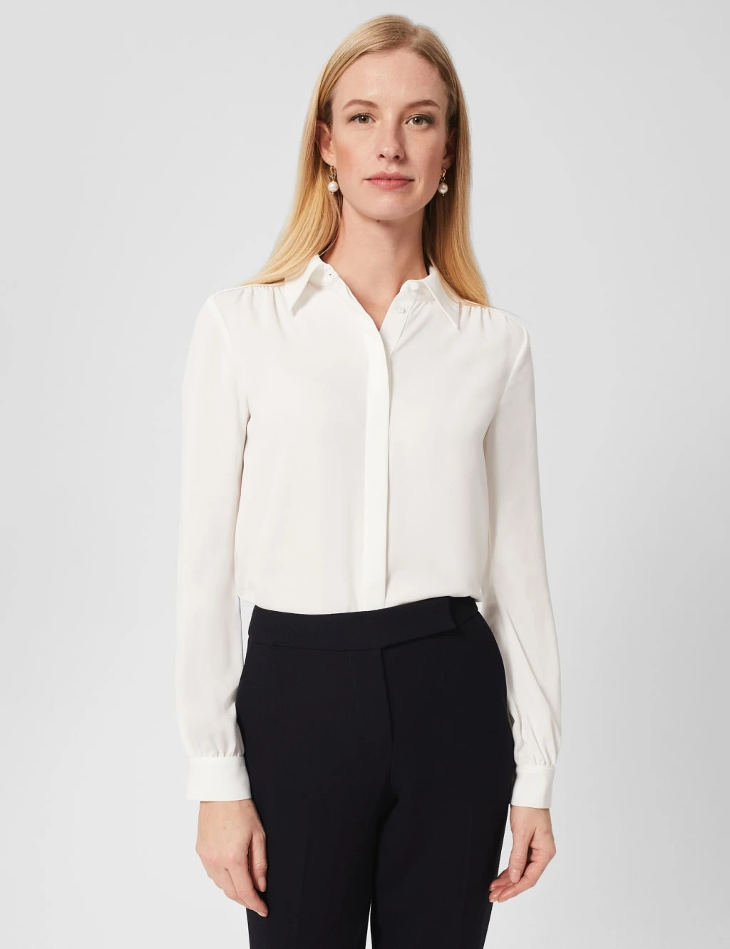 When it’s time to look sharp, reach for this Hobbs blouse. It’s cut in a regular fit with a collared neck for a classic style. A covered button placket offers a neat effect, which is accentuated by long cuffed sleeves.