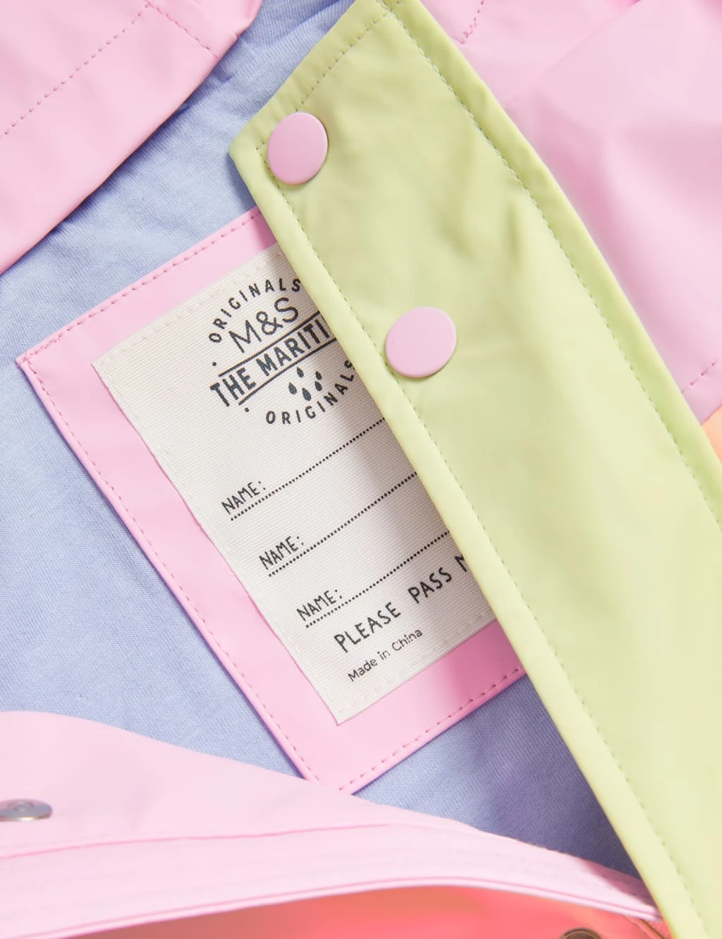 With a cheery colour block design, this kids’ fisherman coat will brighten up drizzly days. Classic regular fit with a zip fastening. Hooded design to help keep them dry.