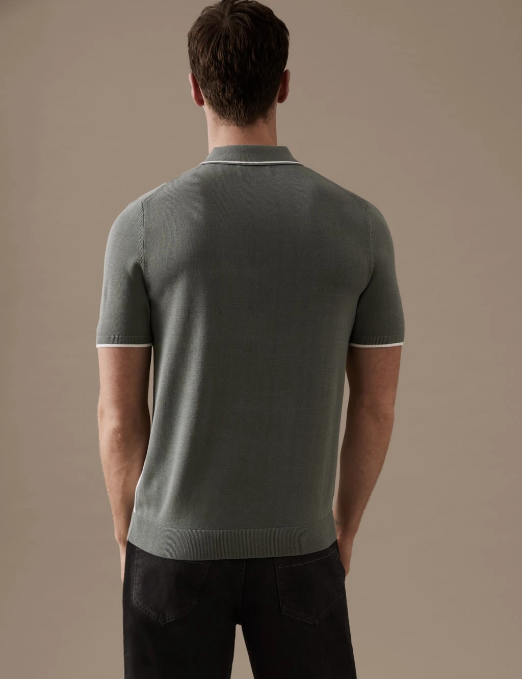 Showcasing a striking colour block pattern, this Autograph cotton-blend knitted polo shirt will stand out in your wardrobe. Its on-trend half-zip makes it easy to slip on and off. The tipped detailing and branded trims add refined finishing touches to this unique piece.