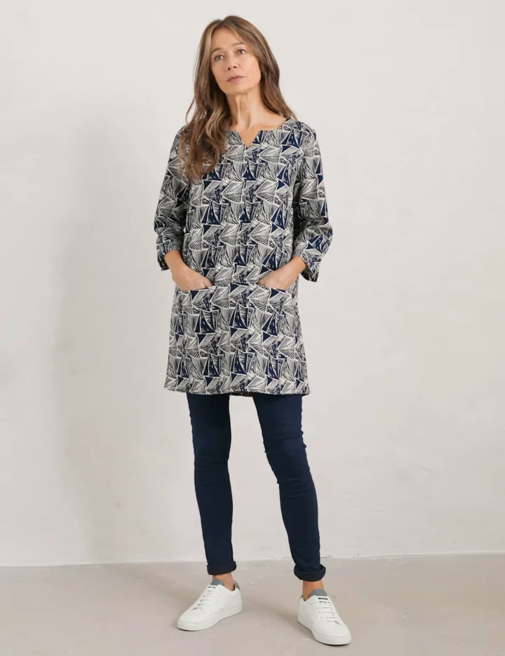Versatile A-line tunic with a handcrafted Seasalt print, an easy drape and handy pockets.