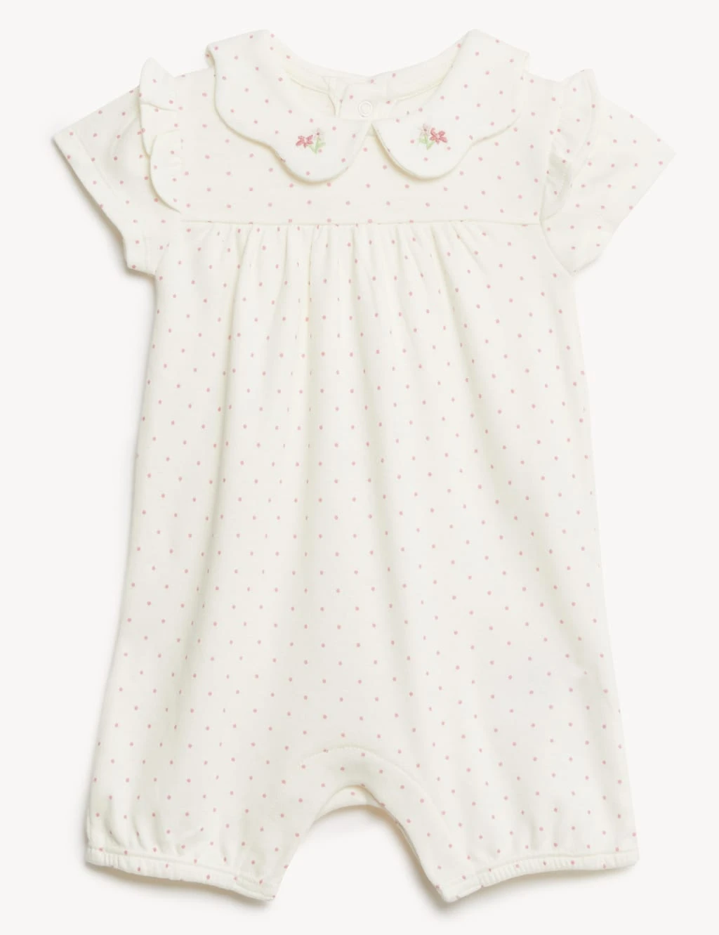 Cotton Blend Spot Print Romper (0-12 Mths)
