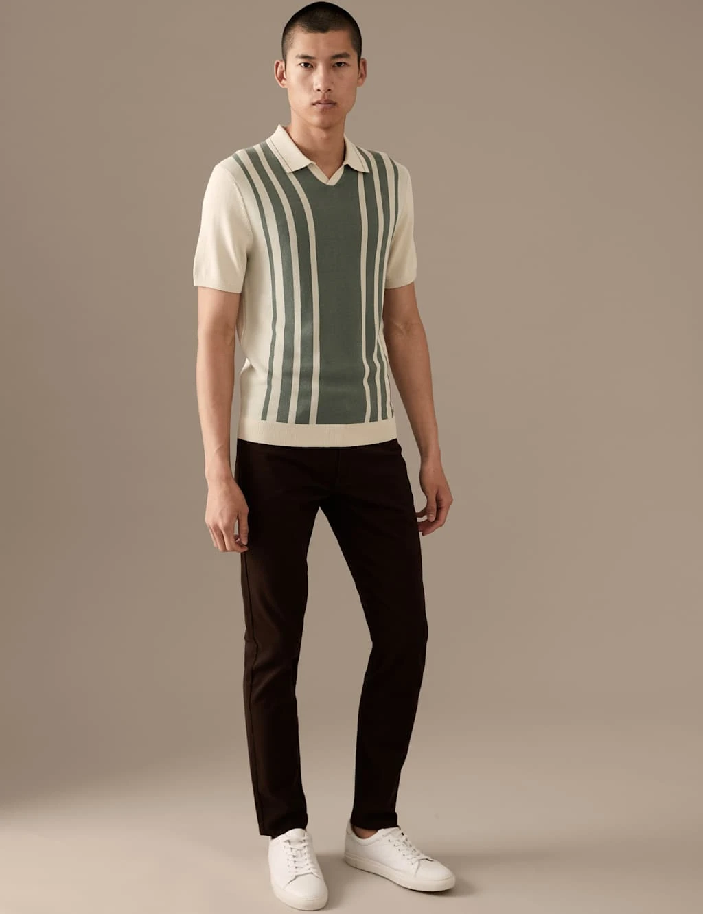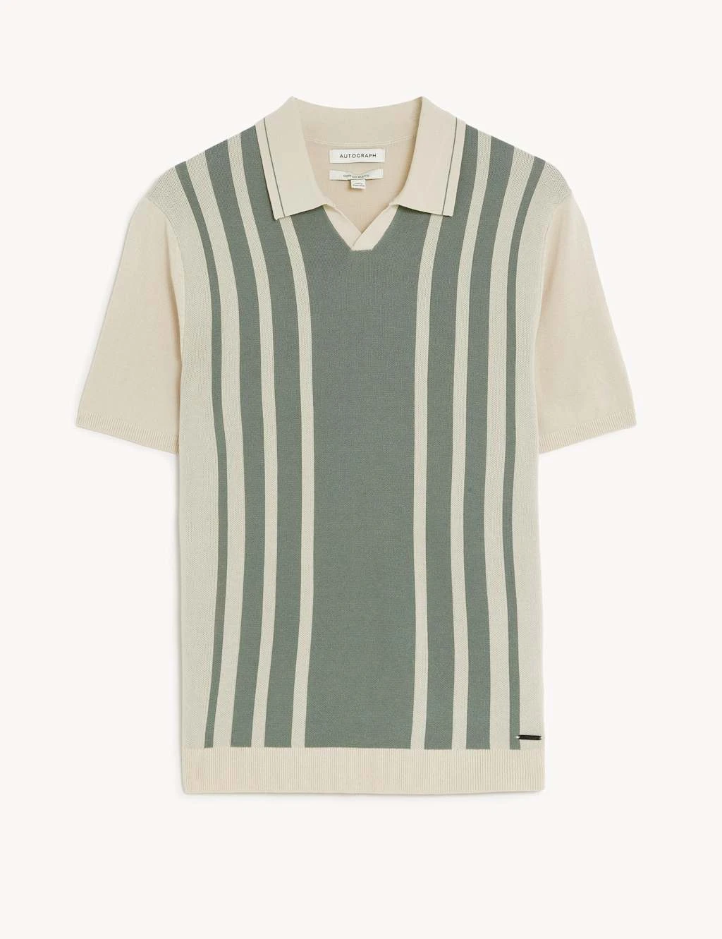 With its bold striped pattern, this cotton-blend knitted polo shirt will make a striking addition to your wardrobe. The open collar brings a laid-back feel. Branded trims add stylish touches.