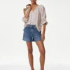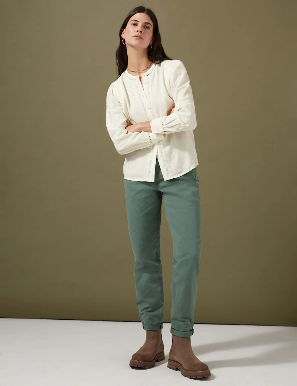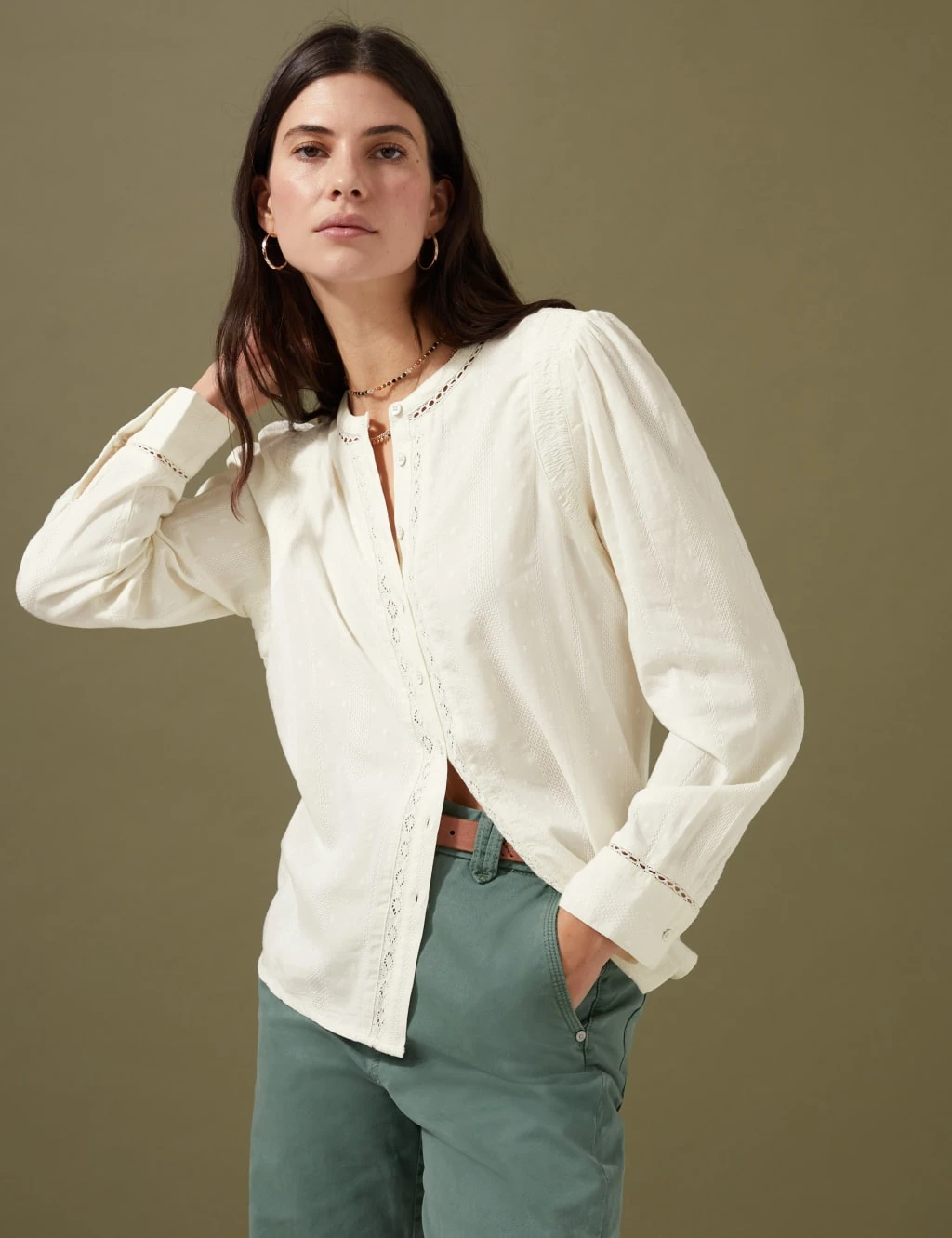 Lace details deliver a feminine finish to this cotton-blend blouse from our Per Una collection. It’s crafted from striped, textured fabric and cut in a slim fit for a flattering shape. A dainty round neck and long sleeves with button-up cuffs complete the piece.