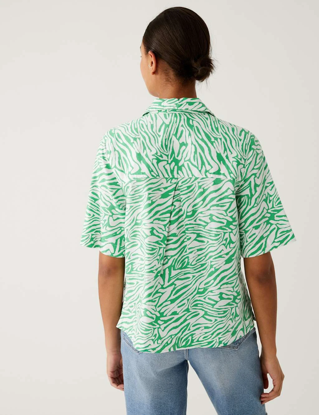 Bring a bold look to your wardrobe with this cotton-rich animal print shirt. Regular fit, with a collared v-neck and breezy short sleeves. Features a chest pocket and a button-through front for easy wear.