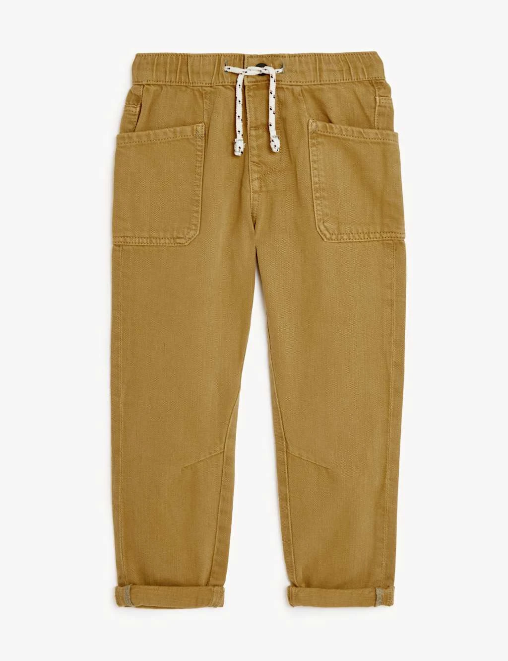 These cotton-rich cargo trousers are perfect for their everyday adventures. Comfy regular fit, with an easy popper and drawstring fastening. Two large patch pockets and cool turned-up cuffs complete the laidback style.