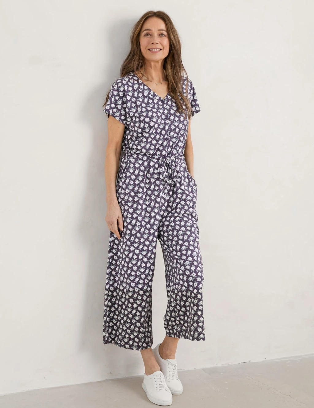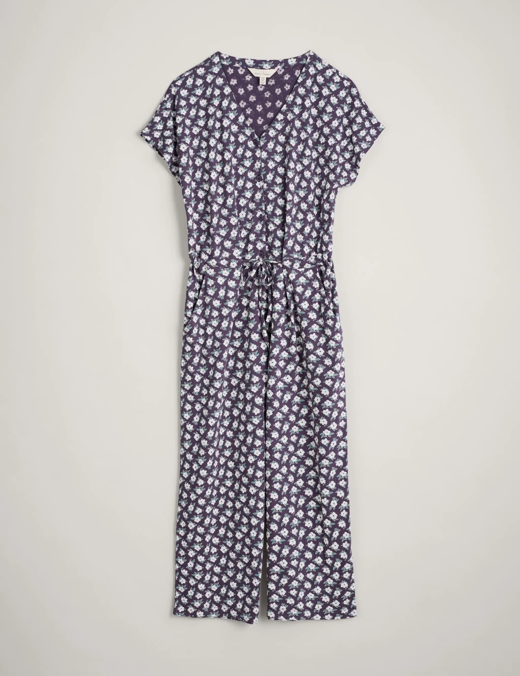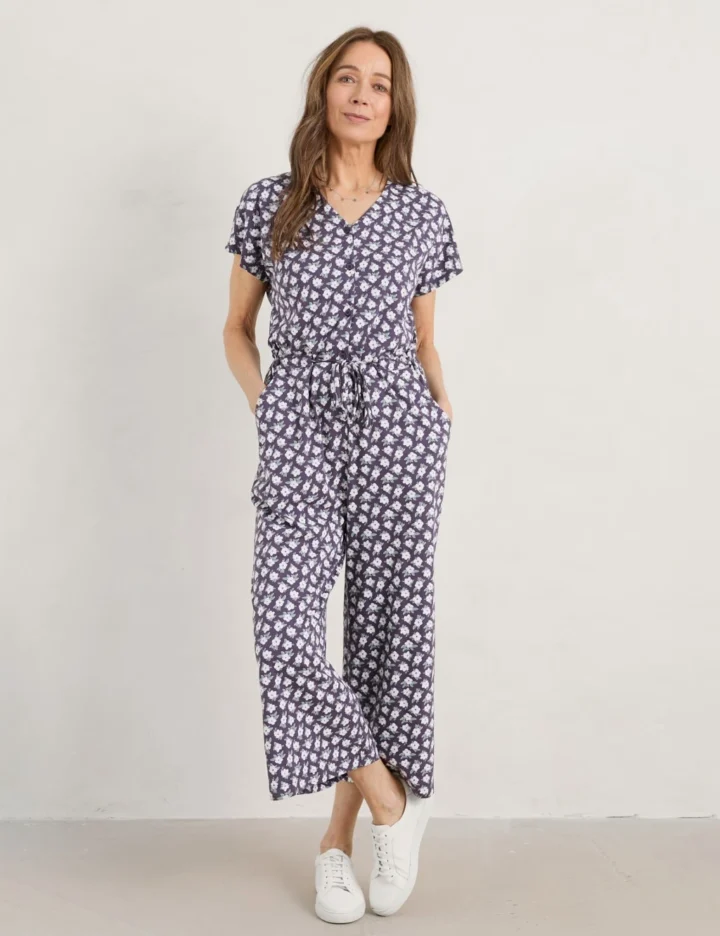 Pretty florals lend a feminine feel to this cotton-rich jumpsuit from Seasalt Cornwall. It comes in a timeless regular fit and is cut wide through the legs for a flattering, laid-back appeal. A thin fabric belt around the waist adds extra shaping and there’s a button fastening through the bodice. This style is complete with breezy short sleeves and a sophisticated v-neckline.