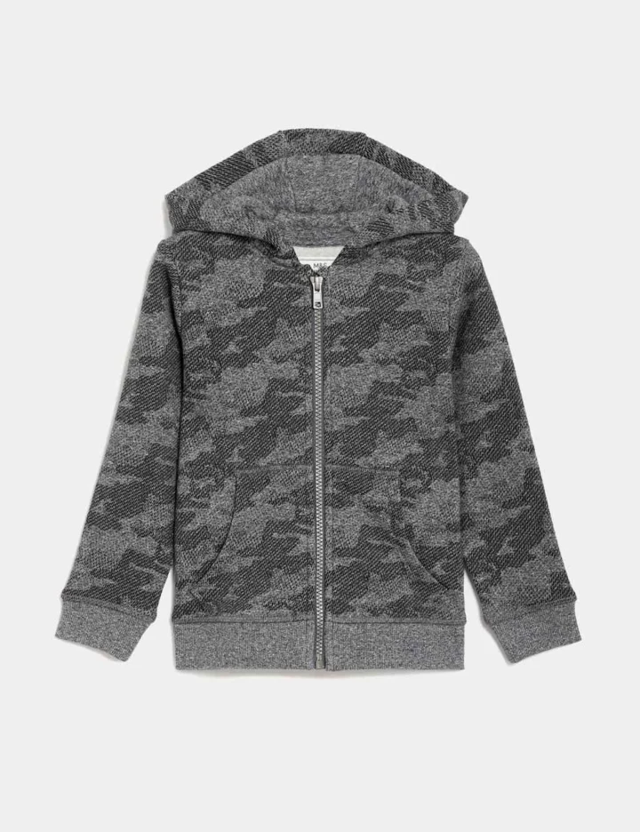 Cotton Rich Patterned Zip Hoodie (2-8 Yrs)