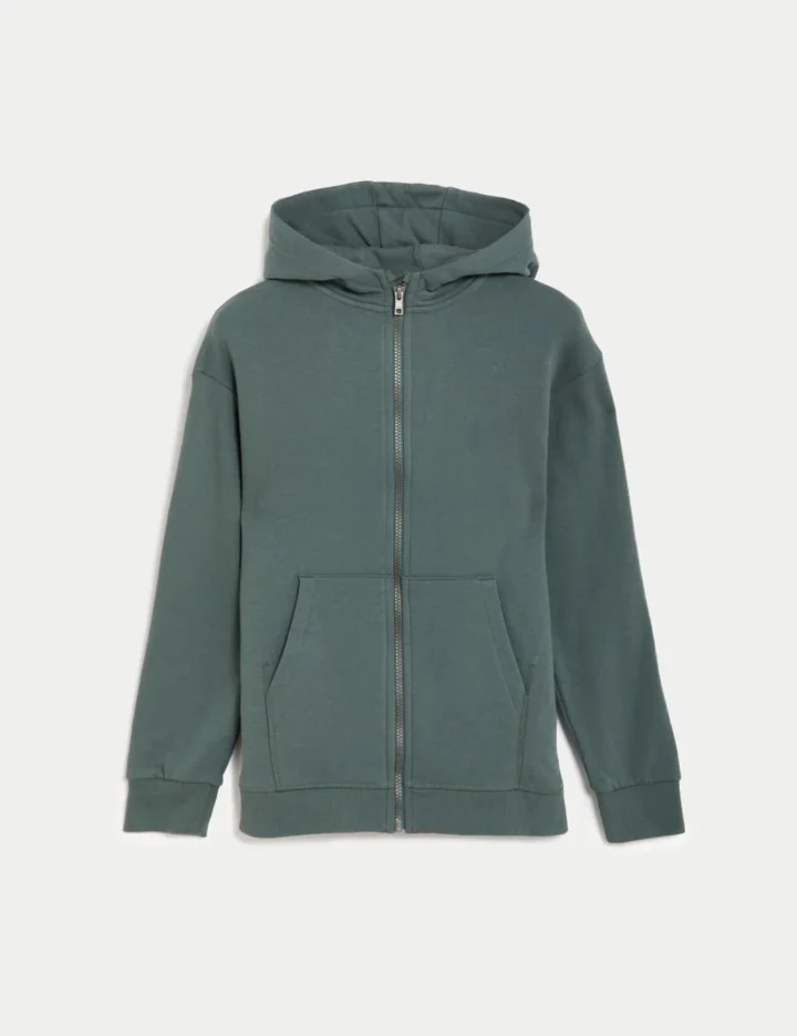 Cotton Rich Plain Zip Hoodie (6-16 Yrs)