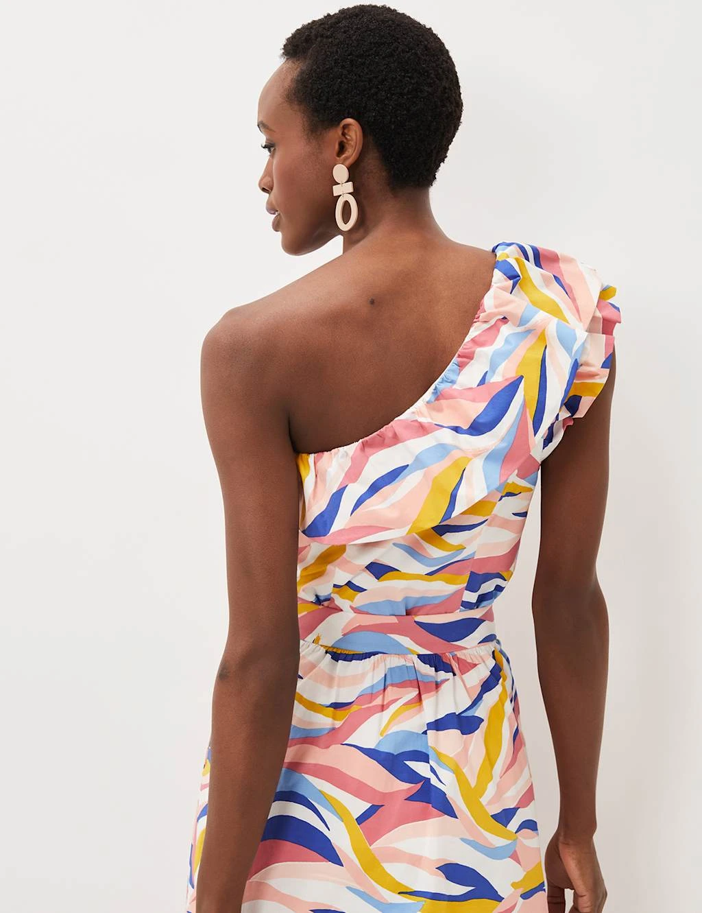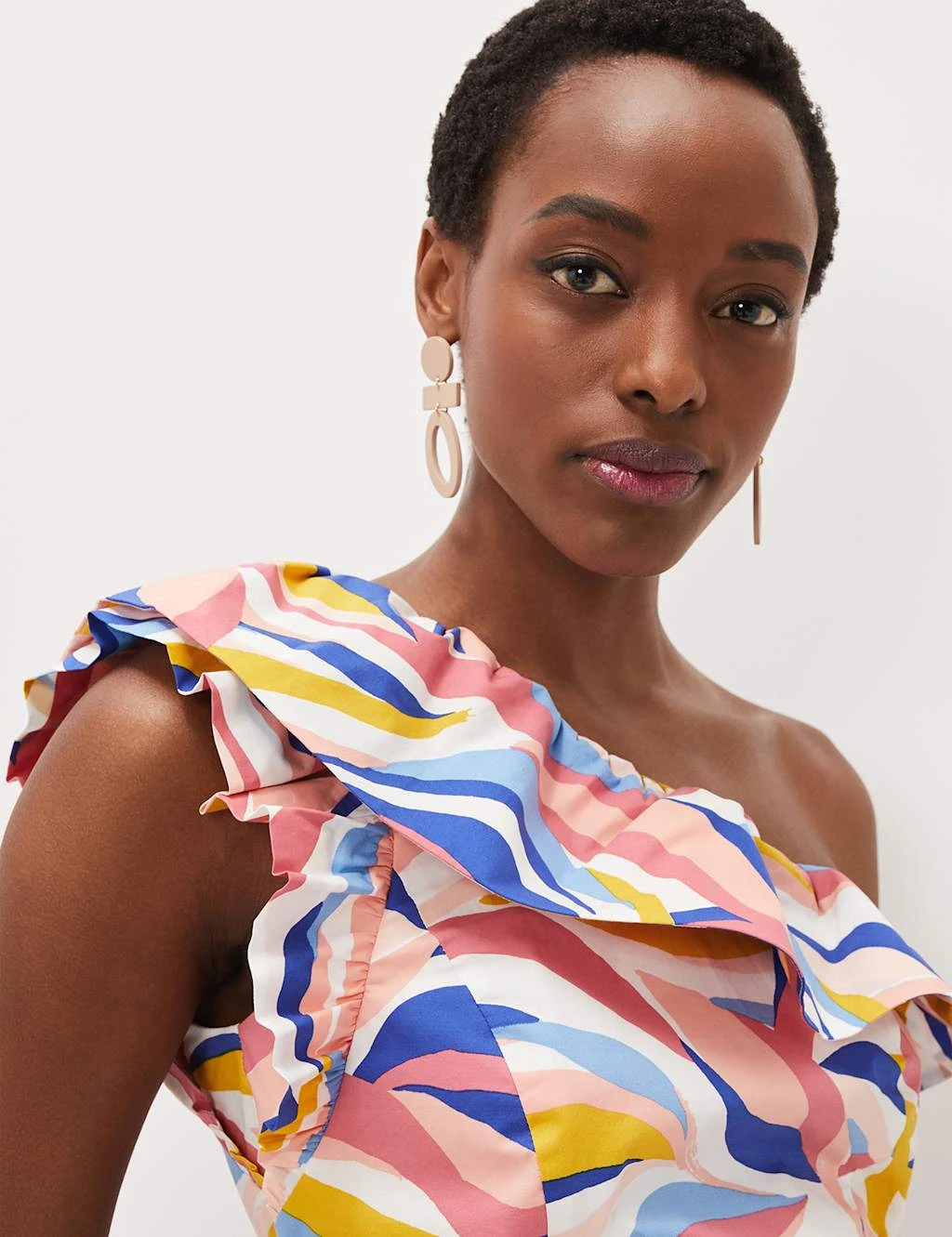 With its dramatic one-shoulder silhouette, this cotton-rich blouse from Phase Eight makes a bold statement. It’s cut in a comfy regular fit, in a sleeveless design with a deep Bardot-style frill at the neckline. An all-over graphic print gives extra standout appeal, while a full lining ensures comfort.