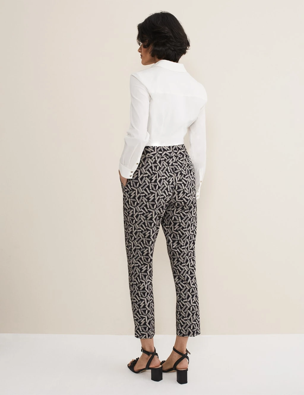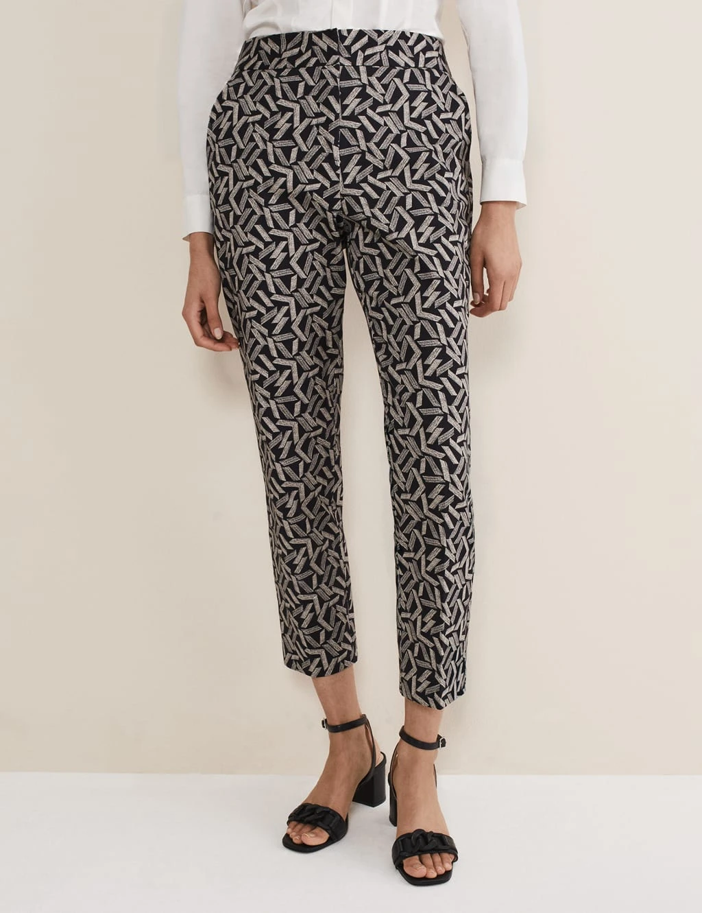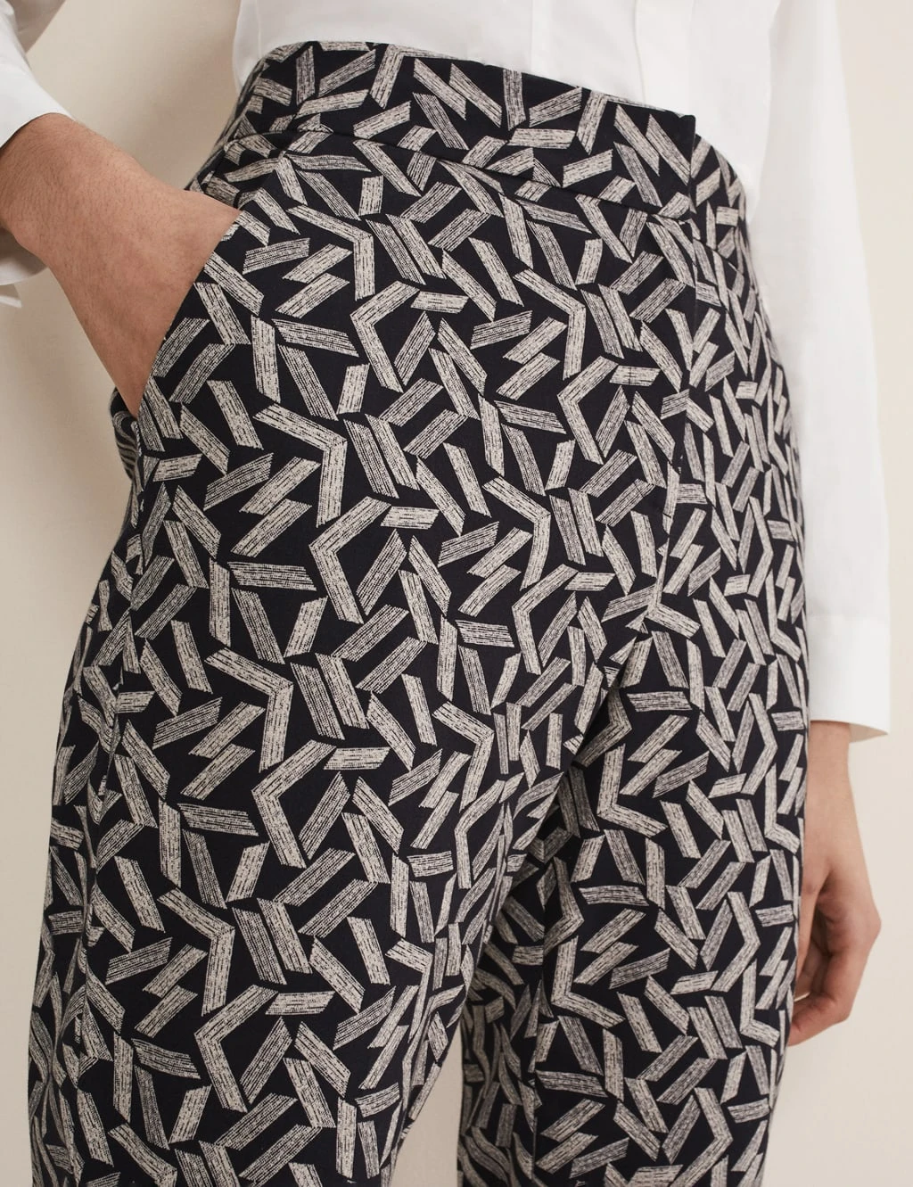 Create a statement look with these printed cotton-rich trousers from Phase Eight. This cigarette-style design is cut to a slim fit in a cropped length for a neat, streamlined silhouette. A high elasticated waist provides flexibility and comfort. Plus, there are discreet side seam pockets at the hips for a practical touch.