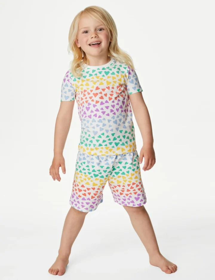Cotton Rich Rainbow Heart Short Pyjama Set (1-8 Yrs)