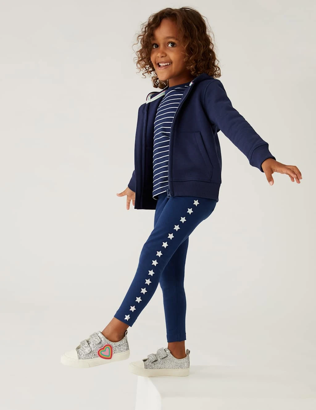Little stars will be ready for adventure in these cotton-rich leggings. Made to a comfy regular fit with added stretch and an elasticated waist. Bold stars run down the side of each leg. We only ever use responsibly sourced cotton for our clothes.