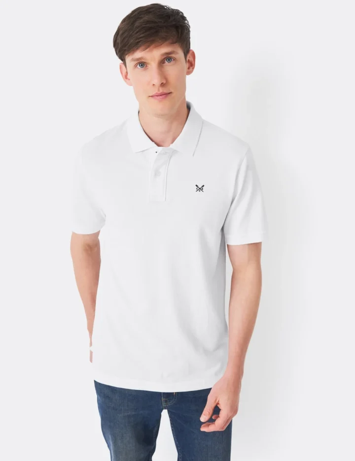 This cotton-rich pique polo shirt by Crew Clothing is a smart-casual staple. It’s cut to a slim fit, with a touch of stretch for comfort. A ribbed collar and cuffs deliver a neat look while crossed oars embroidery, branded buttons and a ‘Crew’ slogan under the collar offer a signature finish.