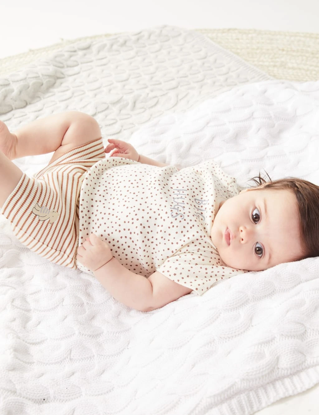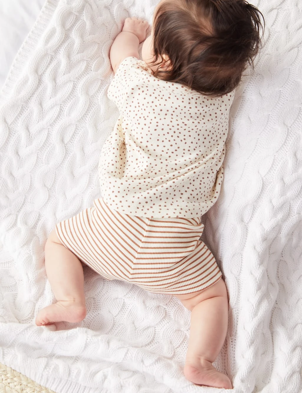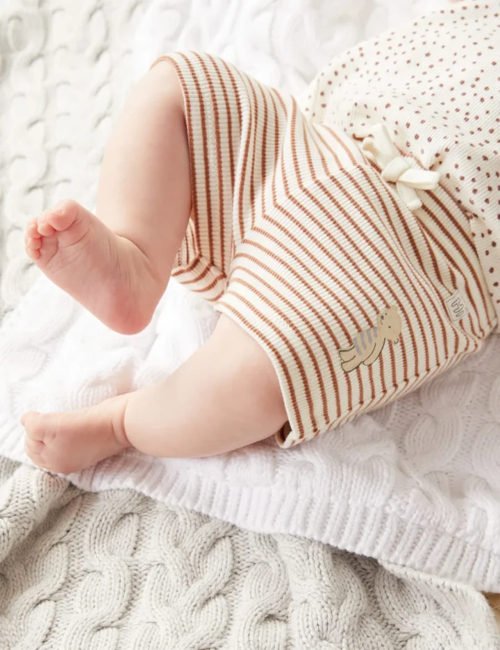 These striped cotton-rich shorts are the perfect choice for warmer days. Made from a soft ribbed fabric with added stretch for comfort. A bow at the elasticated waist and a cute bear graphic on the leg add a sweet finish.