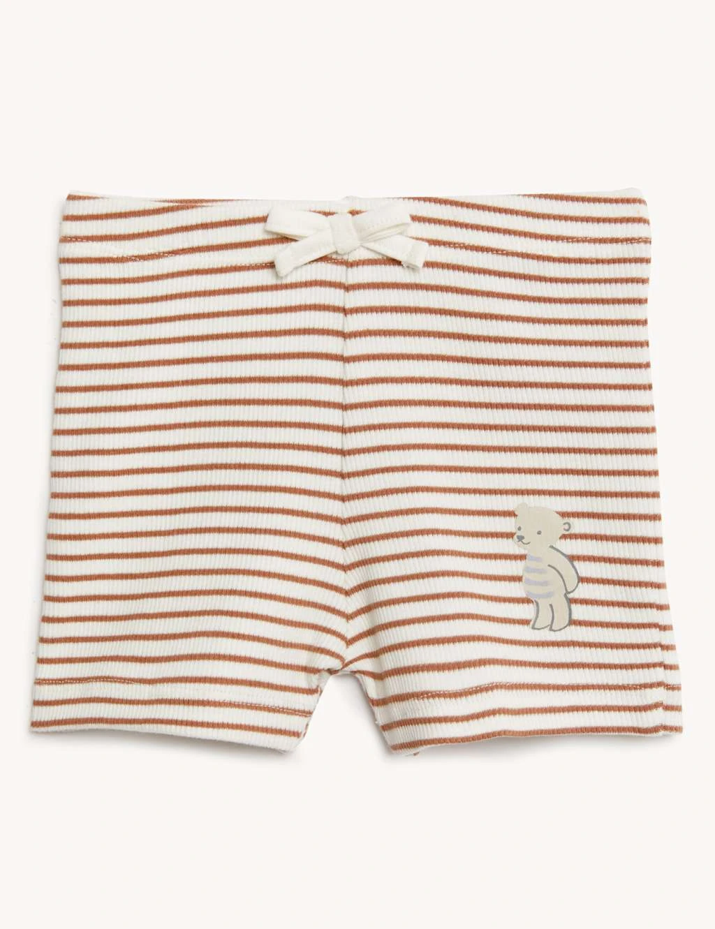 Cotton Rich Striped Bear Shorts (0-12 Mths)