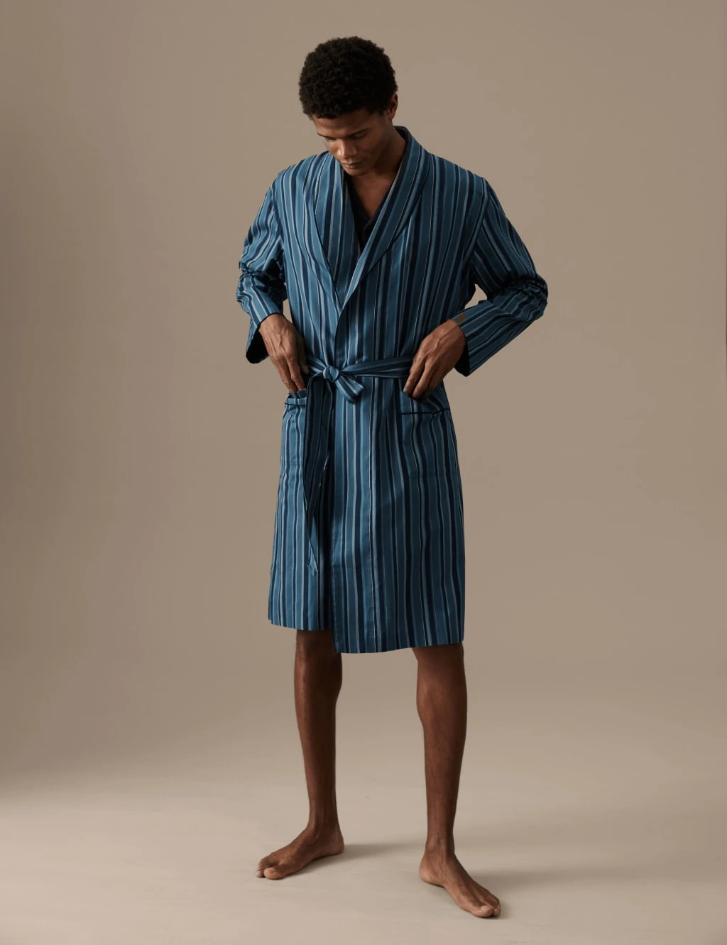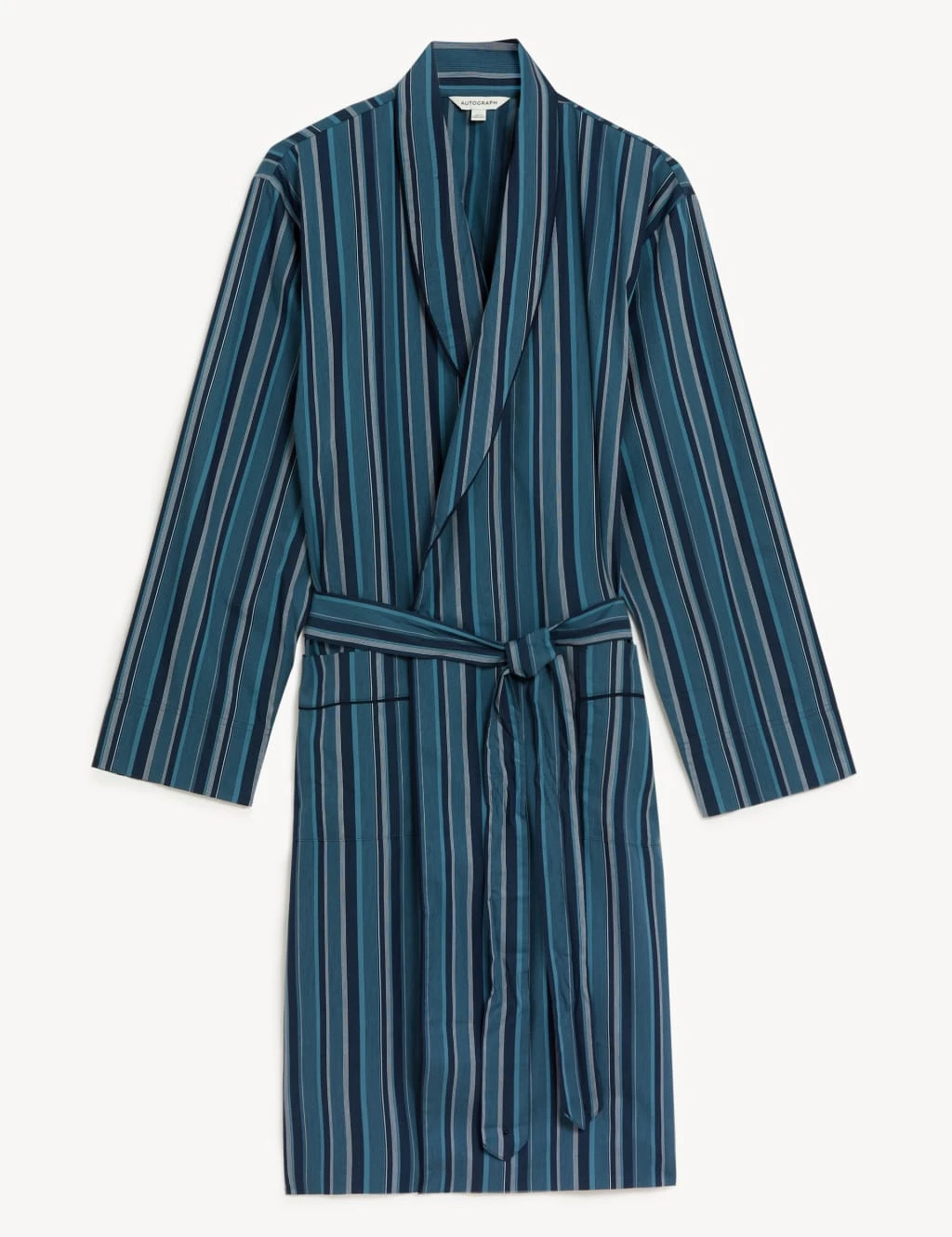 Timeless stripes add a classic feel to this cotton-rich dressing gown from our Autograph collection. It’s cut to a comfortable regular fit with a traditional belt fastening. Two pockets on the front provide an extra practical touch.