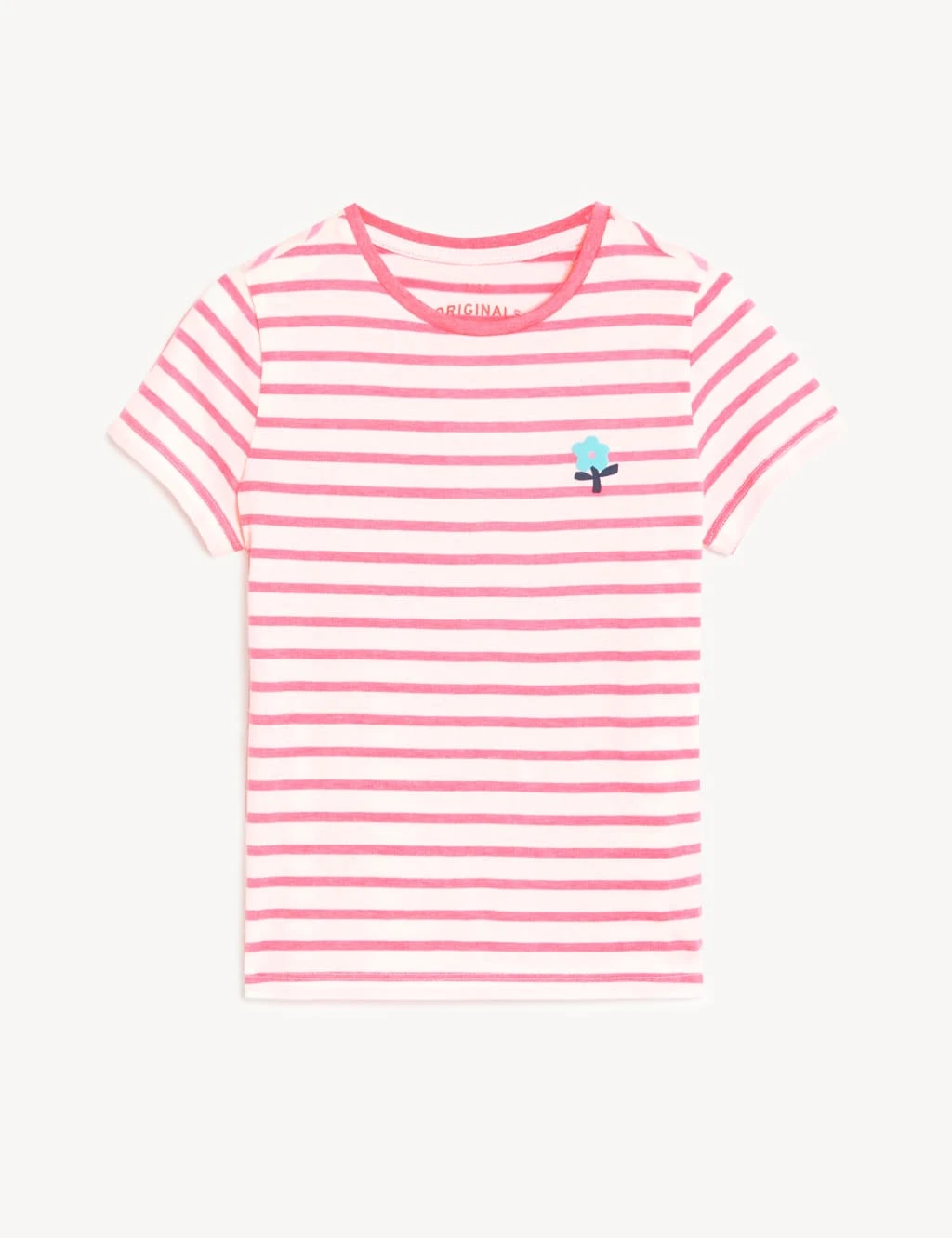 All-over stripes make this cotton-rich t-shirt really stand out. Designed in a comfy regular fit. A flower motif on the chest adds a playful finishing touch.
