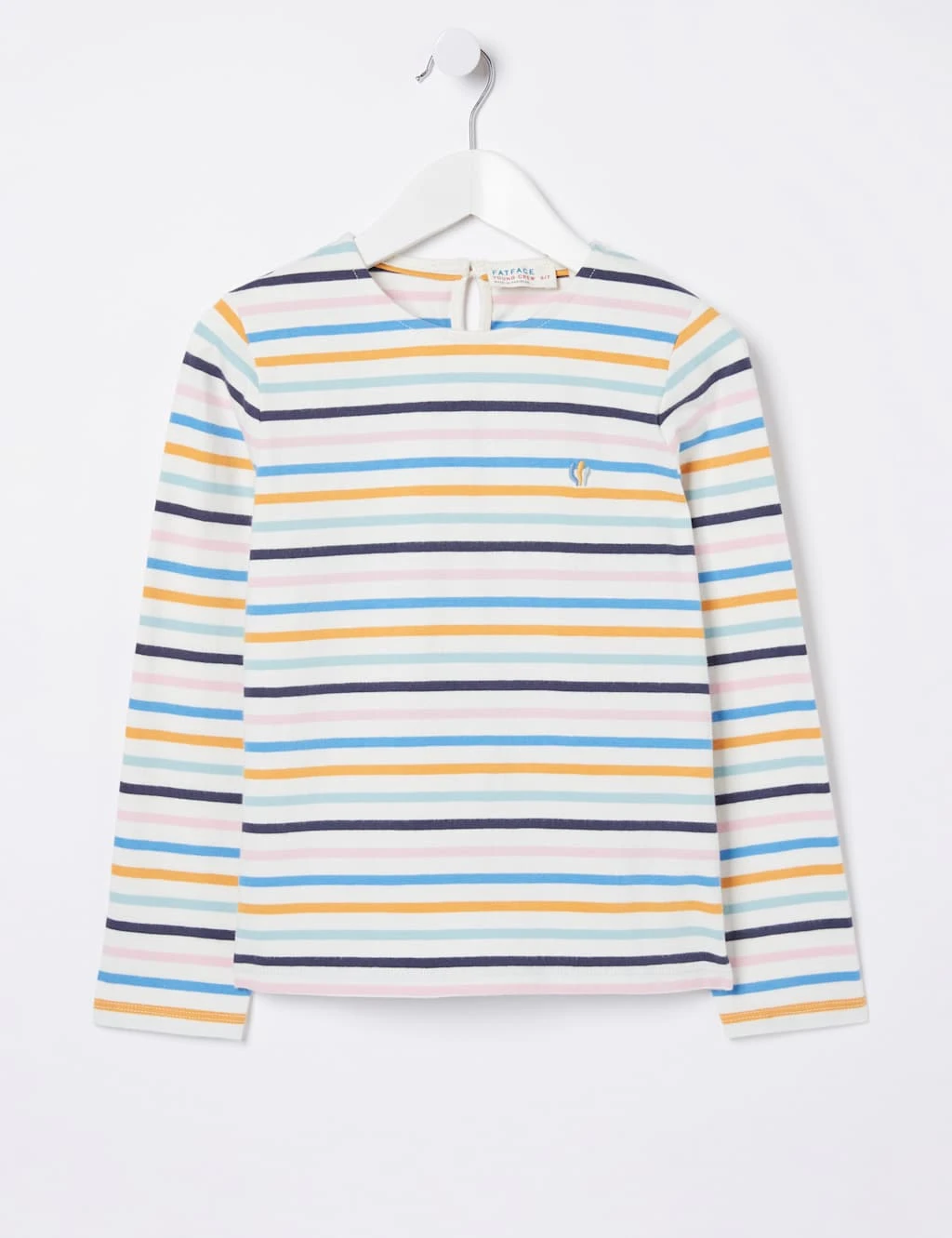 This cheerful striped top from FatFace is made from a soft, cotton-rich blend. It’s cut to a comfortable regular fit with snug long sleeves. The round neck features a keyhole detail at the back, along with a neat single-button fastening.