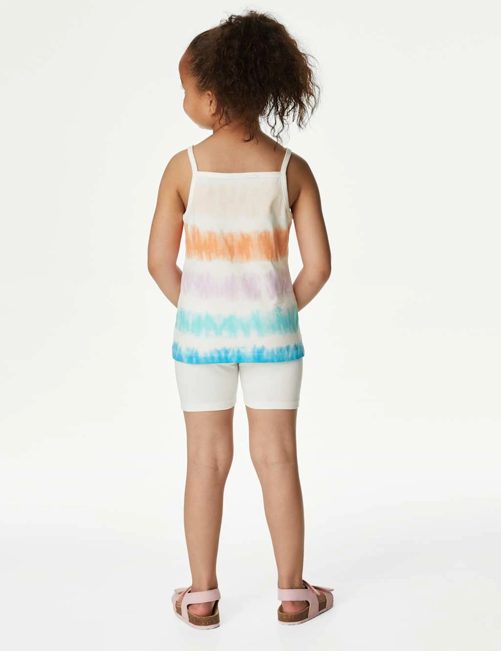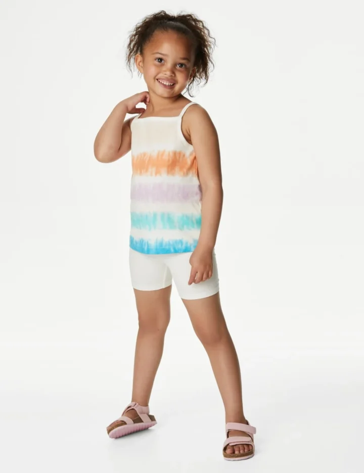 This cotton-rich outfit is perfect for playtime on sunny days. Cut in a comfy regular fit, the set includes a strappy top with a square neckline and a pair of cycling shorts with an easy elasticated waist. The top is finished with pretty tie dye stripes for a playful feel.