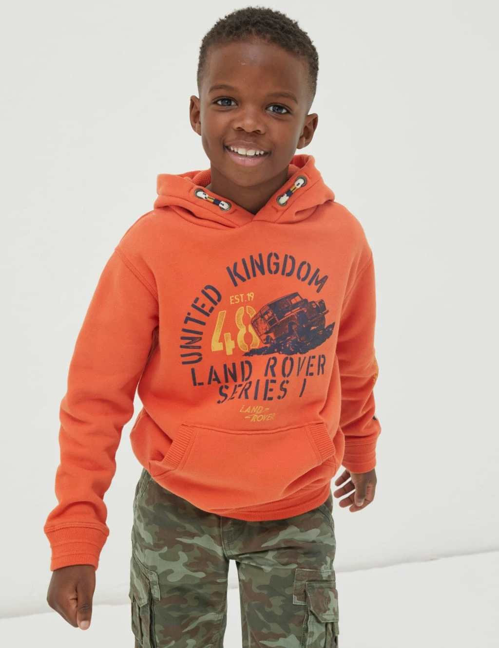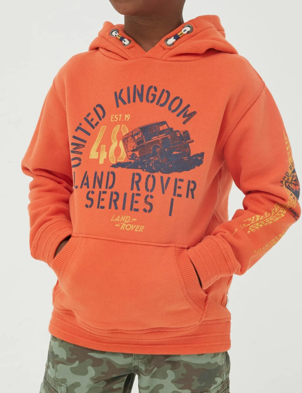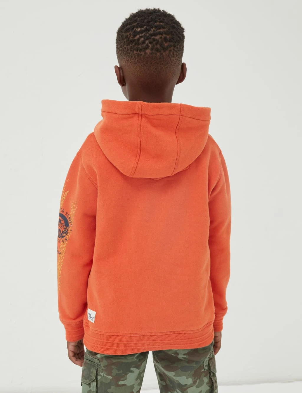 Young car lovers will jump at the chance to wear this cotton-rich hoodie from FatFace. It’s made to a comfy regular fit, with a cosy kangaroo pocket and a snuggly hood. A striking car graphic features on the front, while a cool tyre mark print roars across the arm.