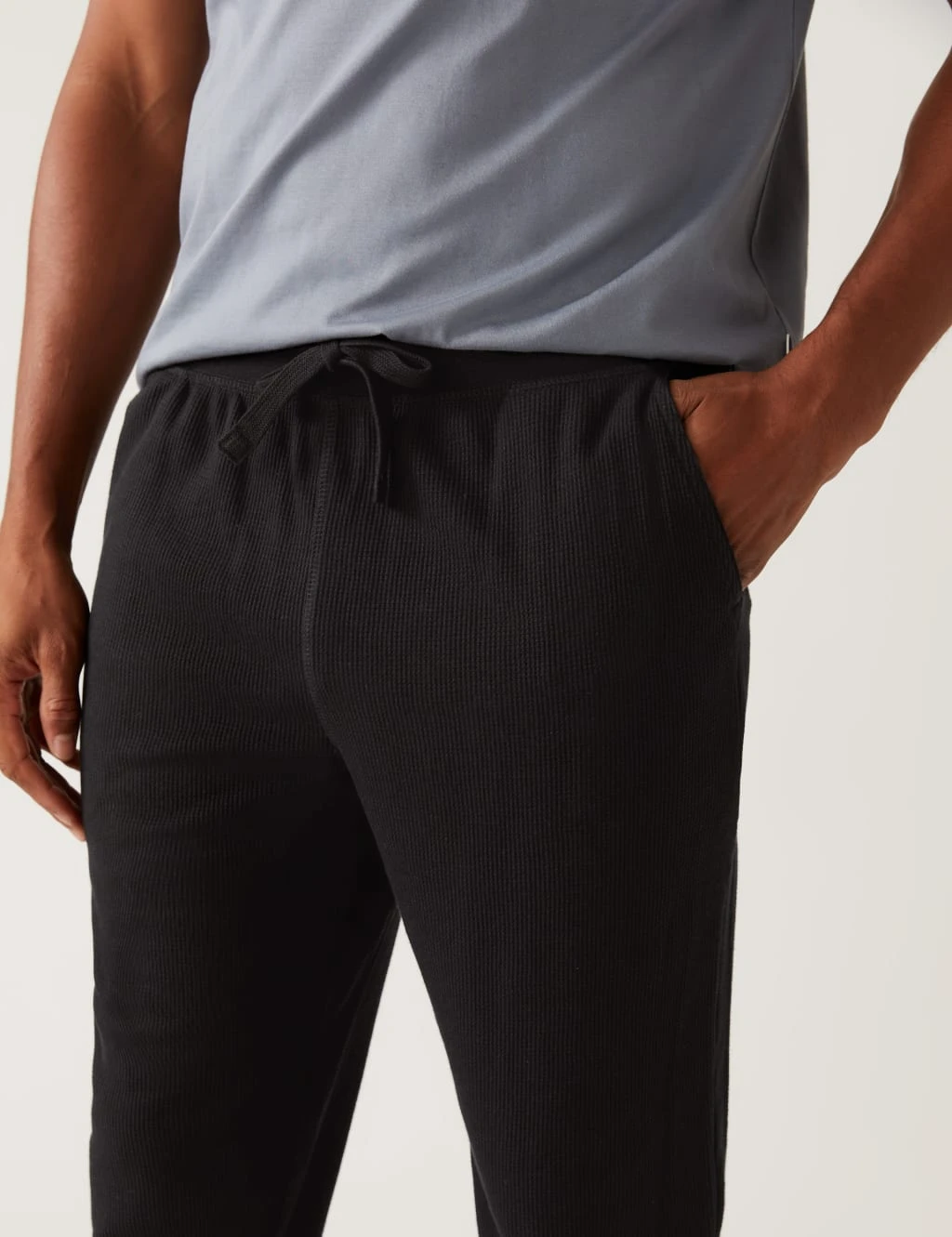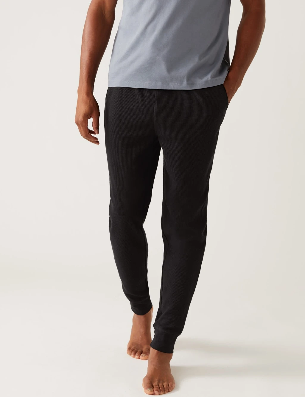 Kick back in comfort with these cotton-rich loungewear bottoms. Easy regular fit, with a comfy drawstring waist and handy side pockets. The waffle-textured fabric creates a soft, breathable feel. We only ever use responsibly sourced cotton for our clothes. Made with recycled polyester. M&S Collection: easy-to-wear wardrobe staples that combine classic and contemporary styles.