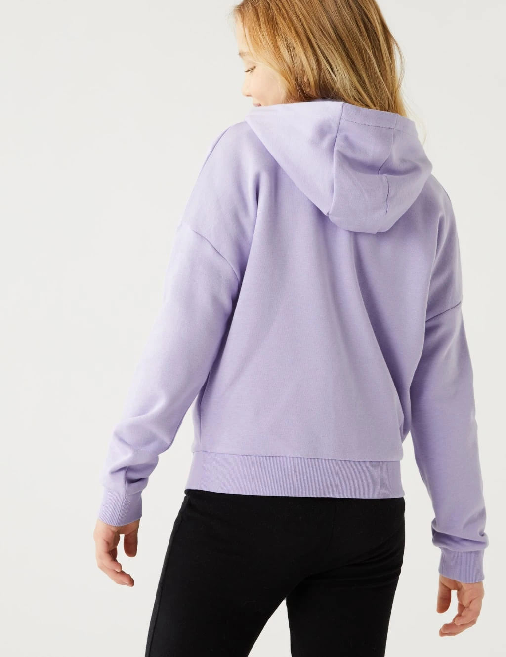 85% cotton, 15% polyester (exclusive of trimmings) , Ribbing – 95% cotton, 5% elastane , Hood lining (of a product) – 100% cotton