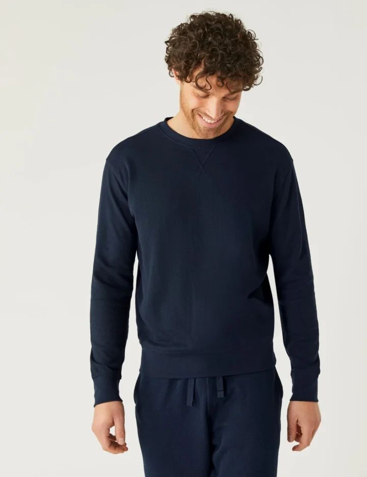 Relax in comfort in this loungewear sweatshirt made from ultra-soft cotton-blend fabric. Regular fit for a laidback feel. Cosy waffle texture with snug ribbed trims. We only ever use responsibly sourced cotton for our clothes.
