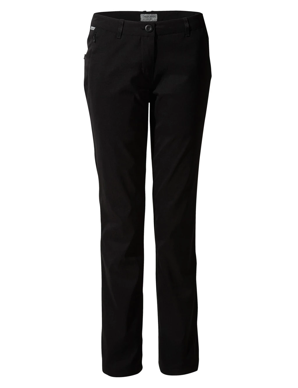 These Craghoppers Kiwi Pro trousers are a perfect choice for outdoor adventures. They’re styled in a practical tapered shape with a comfortable fixed waist. The Ecoshield water-repellent finish keeps you dry in a shower. A cosy brushed lining adds extra insulation when the weather turns chilly, and three zipped pockets ensure your essentials stay secure. There’s a detachable sunglasses wipe to keep your shades clean, and heel tape added to the ankle hems for outstanding durability. Made with recycled polyester.