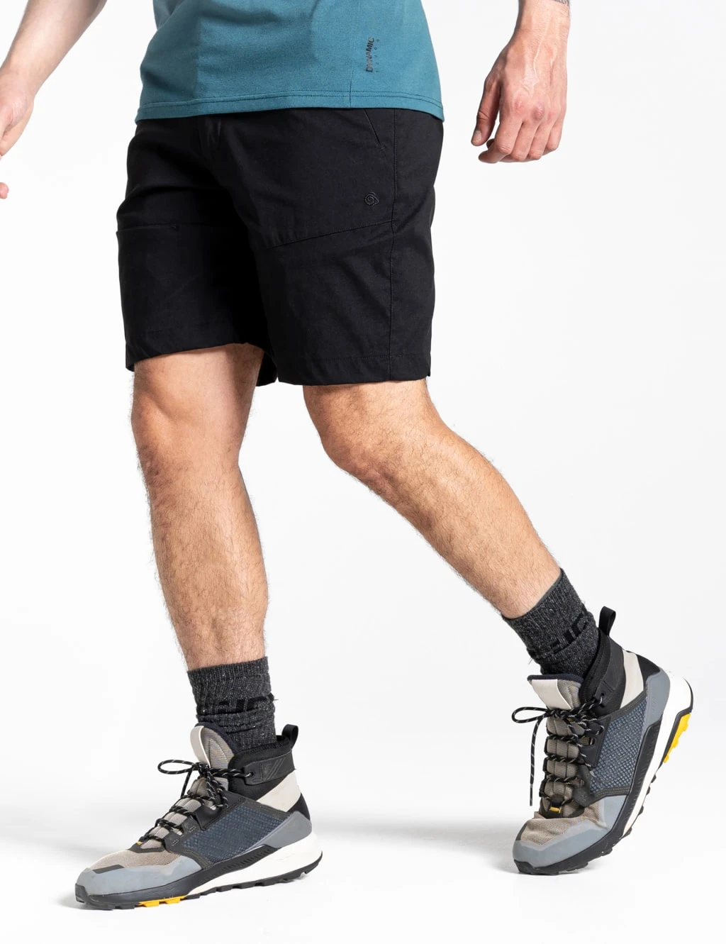 These trekking shorts from Craghoppers are a practical choice for outdoor adventures. They’re cut in a regular fit, with added stretch for comfort and a neat button and zip fastening. Zip-up pockets at the hips, thighs and back provide plenty of storage for the day’s essentials. An integral glasses wipe helps you keep your sunglasses smear-free, while branded tab labels and embroidery give a premium finish.