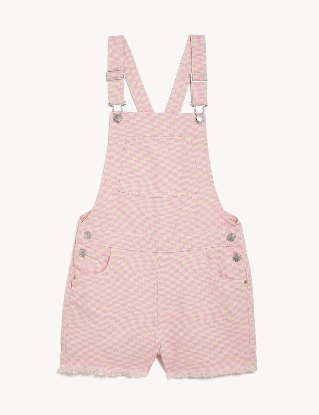 Denim Checkerboard Print Dungarees (6-16 Yrs)
