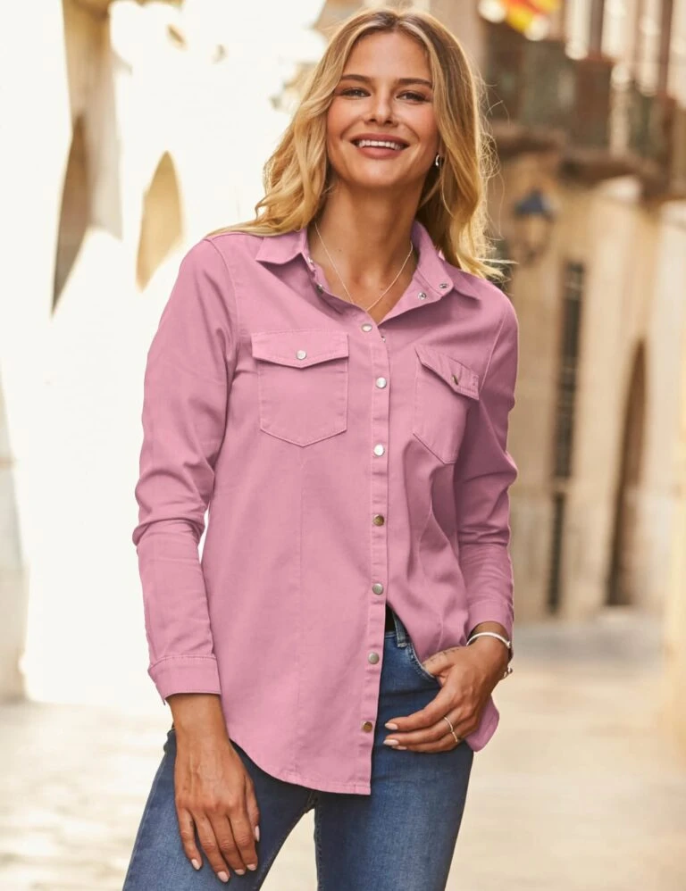 Off-duty days were made for this pure cotton denim shirt by Sosandar. This casual style is cut to a comfortable regular fit and features long sleeves and a collared neck. Two patch pockets and metallic popper fastenings add to its relaxed feel.