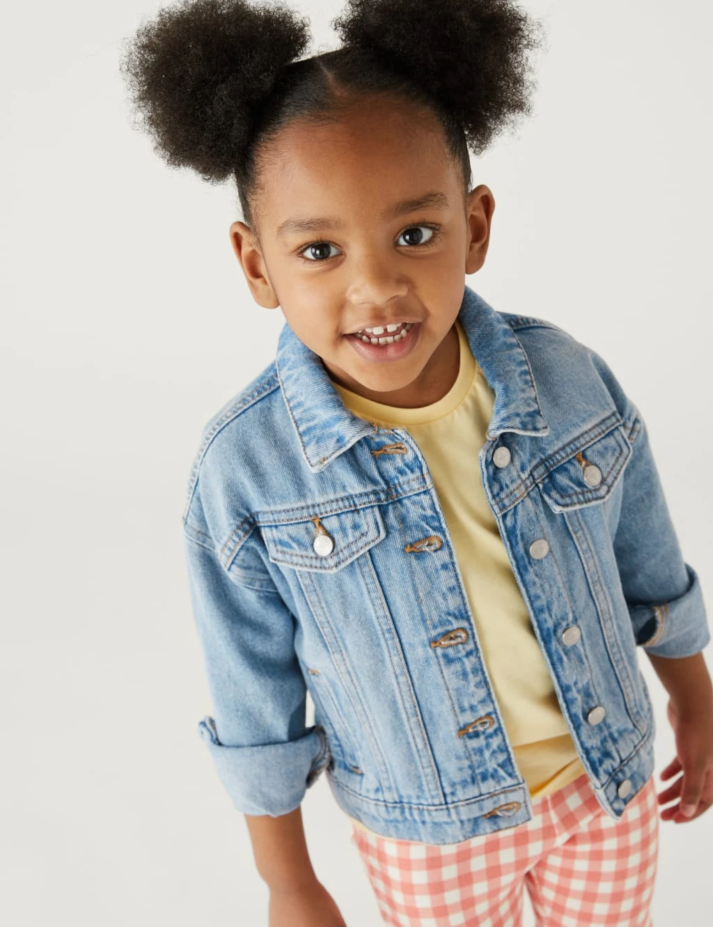 Classic and easy to wear, this denim jacket is one they’ll reach for again and again. Cut to a regular fit, with a button-through front, collared neckline and pockets for carrying all their essentials. Cool boxy, cropped shape.