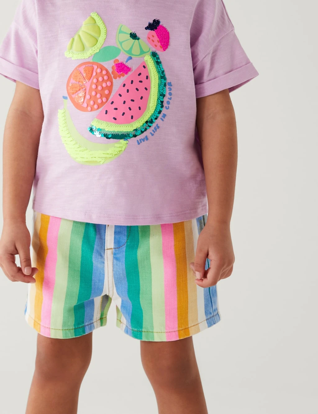 Denim Rainbow Striped Shorts (2-8 Yrs)