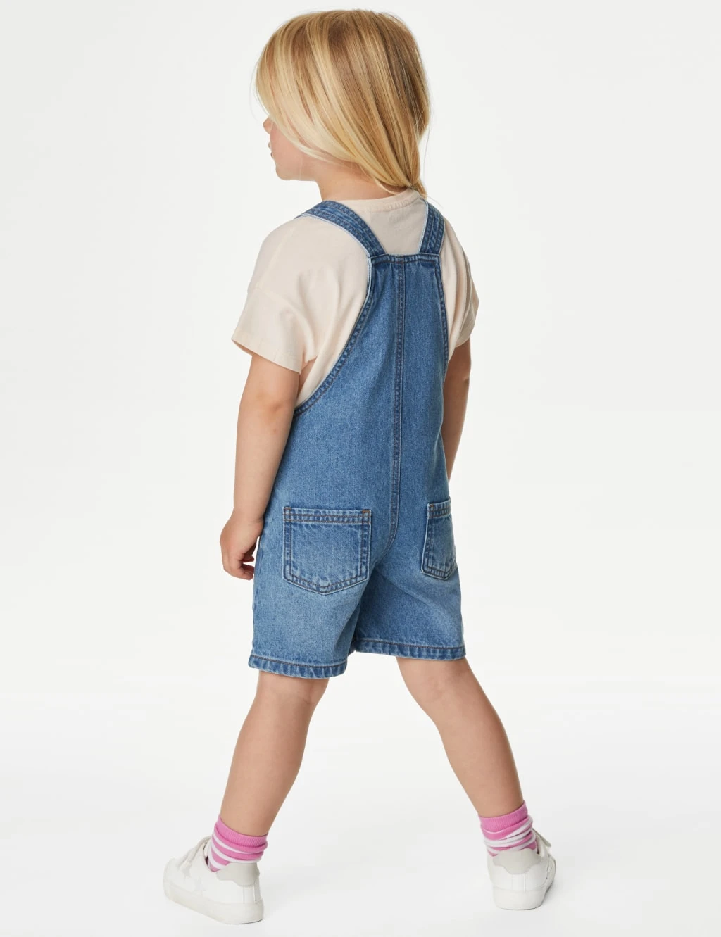 Dungaree – 100% cotton (exclusive of trimmings), Pocketing (pocket fabric composition) – 65% polyester, 35% cotton, Tee – 100% cotton, Neck ribbing – 98% cotton, 2% elastane