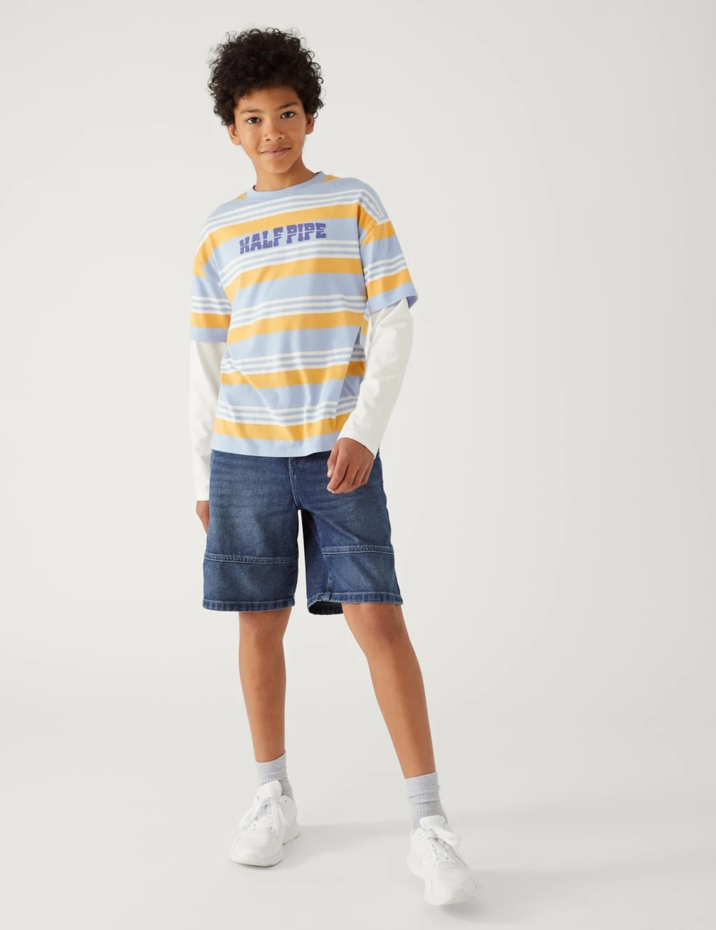 With their classic carpenter styling, these denim shorts are right on trend. They’re cut to a regular fit in a slightly longer length, with an easy button and zip fastening. Useful large pockets and a hammer loop give them an authentic feel.
